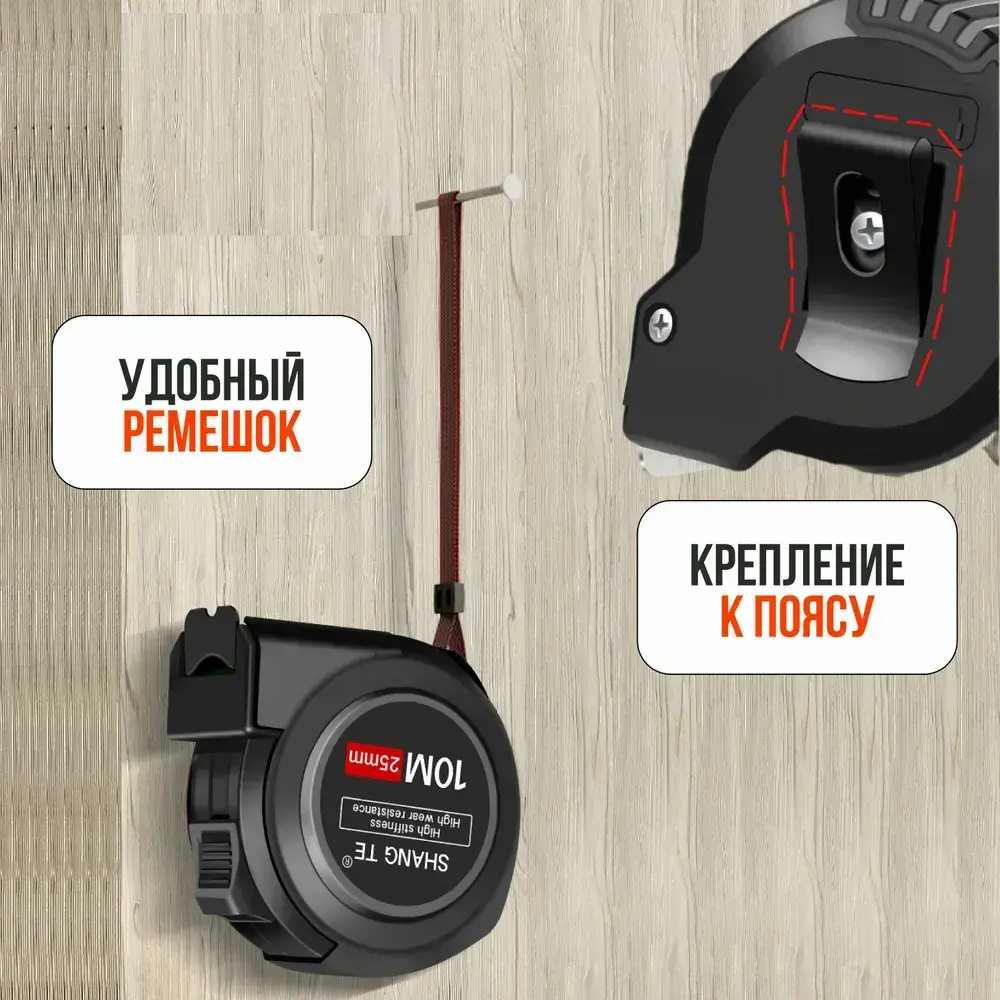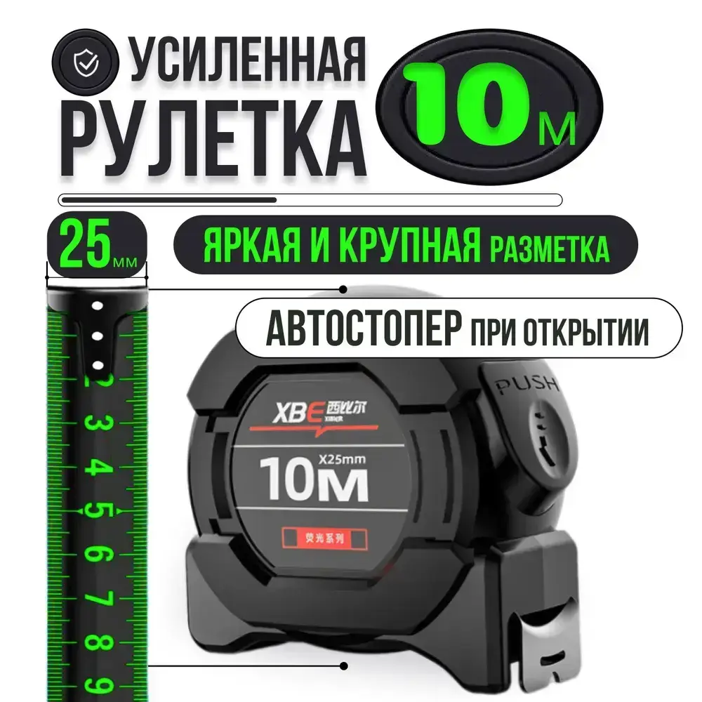 10м*25 мм Строительная рулетка с автостопом для измерений длиной 10 м с шириной ленты 25 мм