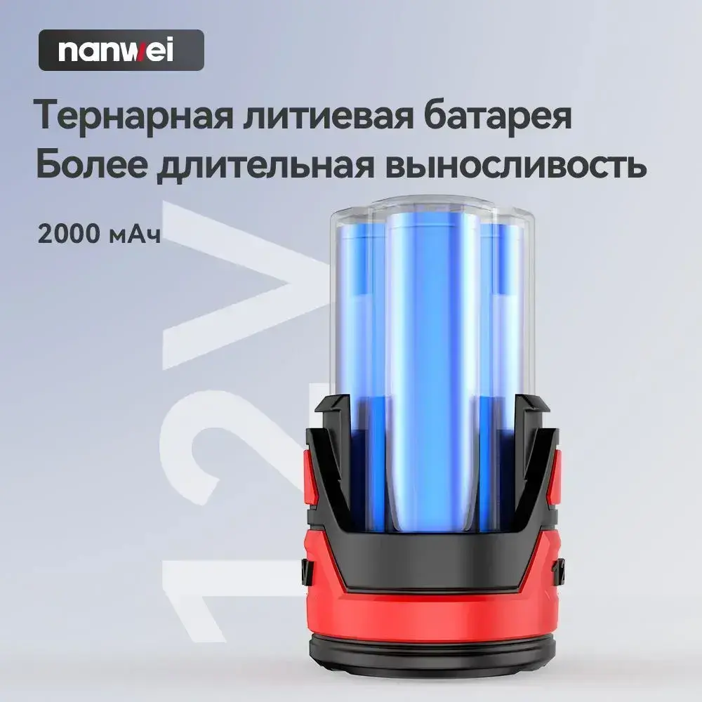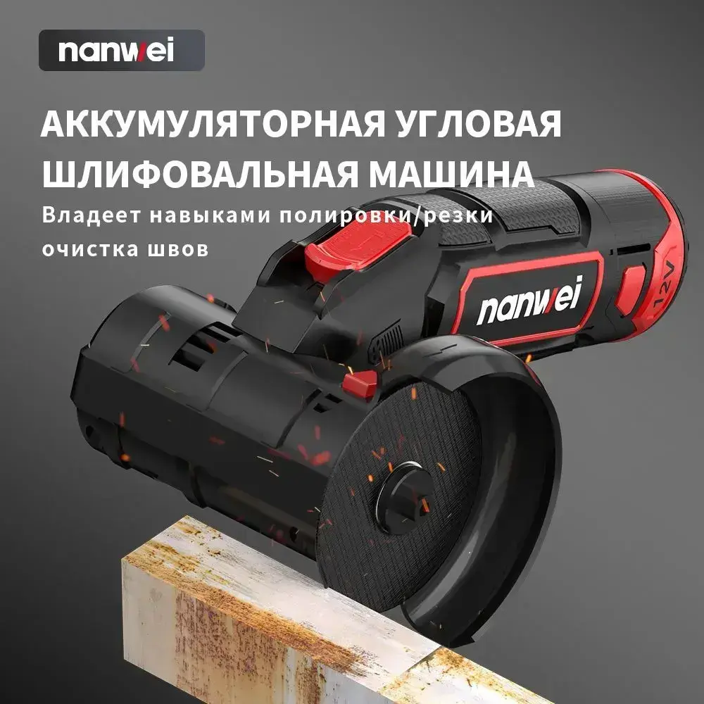 12В Угловая шлифовальная машина NANWEI Мини диаметр диска 76мм резка и шлифовка металла 12000-19500 об/мин
