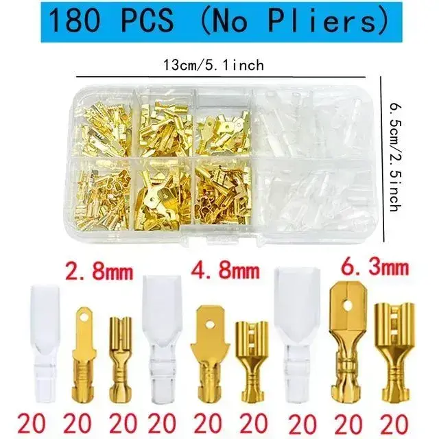 180 штук Обжимная Клемма в коробке,клемы-электро обжимные 2.8 4.8 6.3 mm,золотой