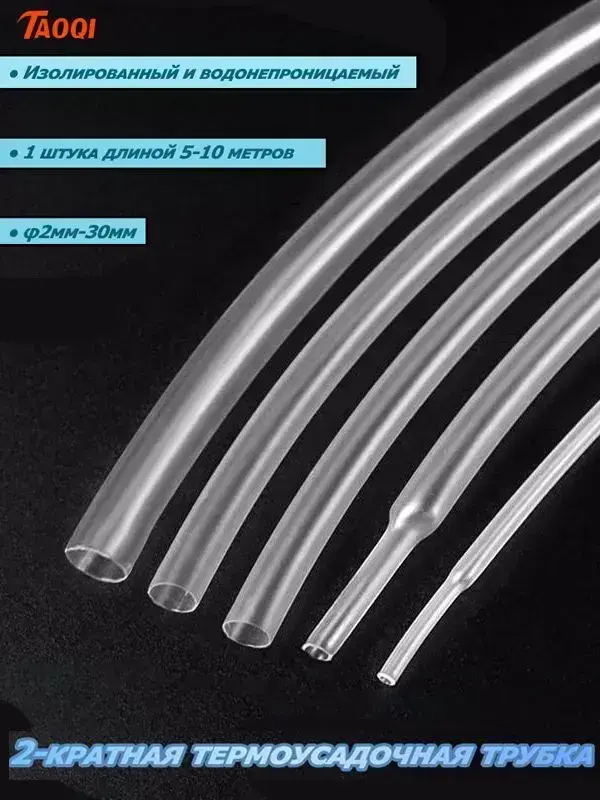 2-кратная термоусадочная трубка, 10 мм, черная, длиной 10 метров