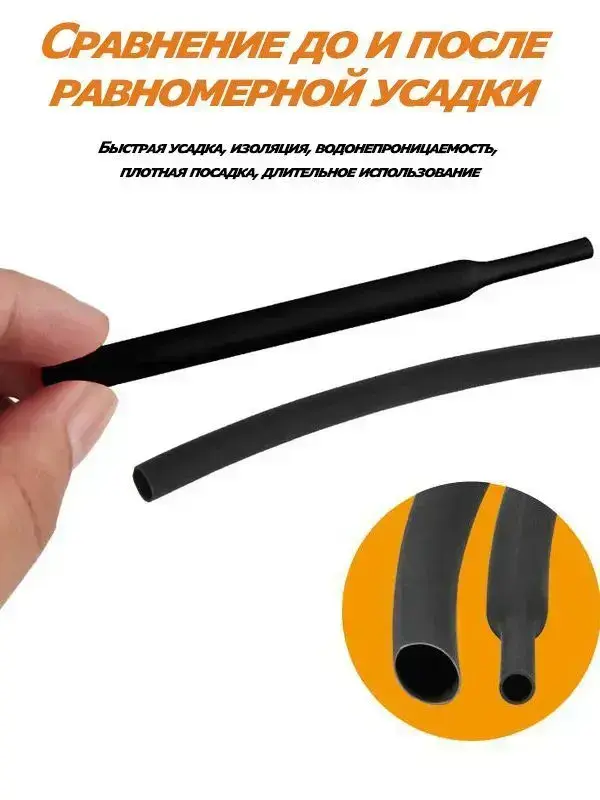 2-кратная термоусадочная трубка,12 мм, черная, длиной 10 метров