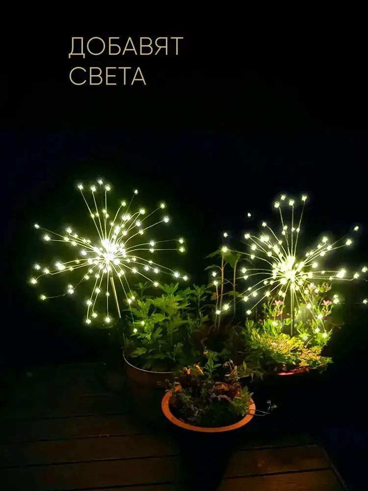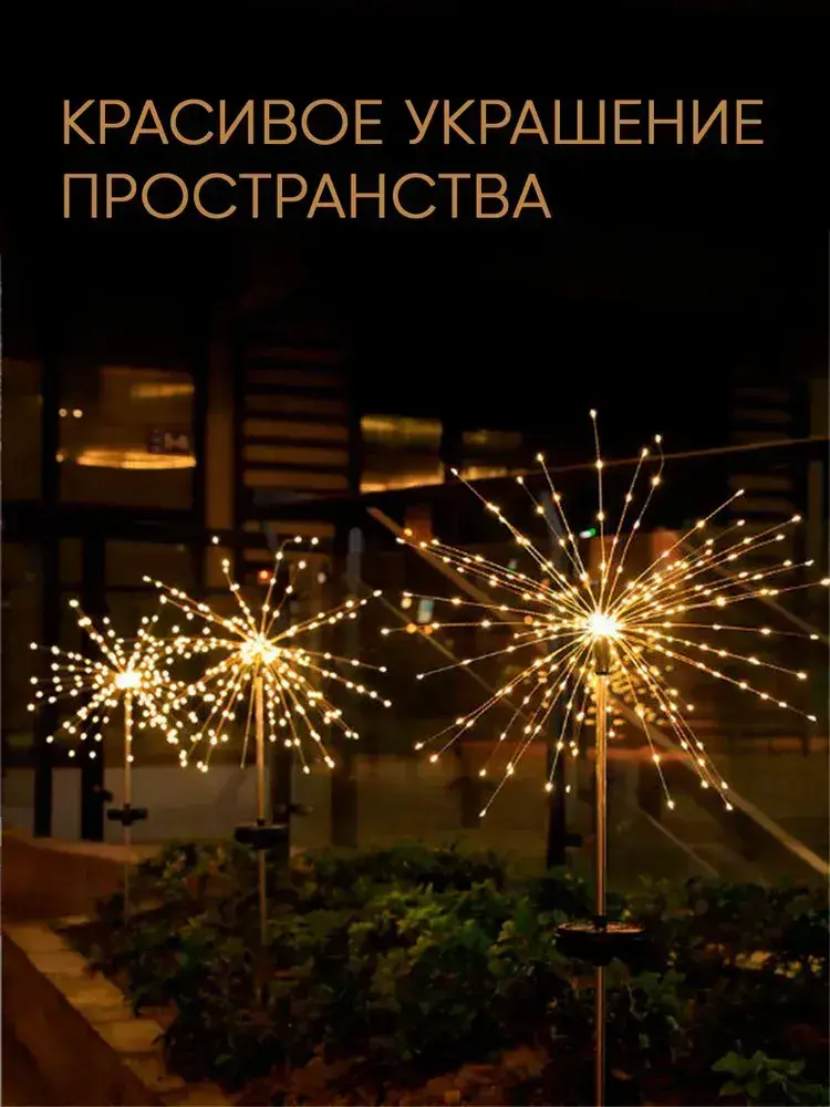 2 шт. Декоративный садовый уличный светильник по 200 ламп на солнечной батарее "Фонарик Фейерверк"