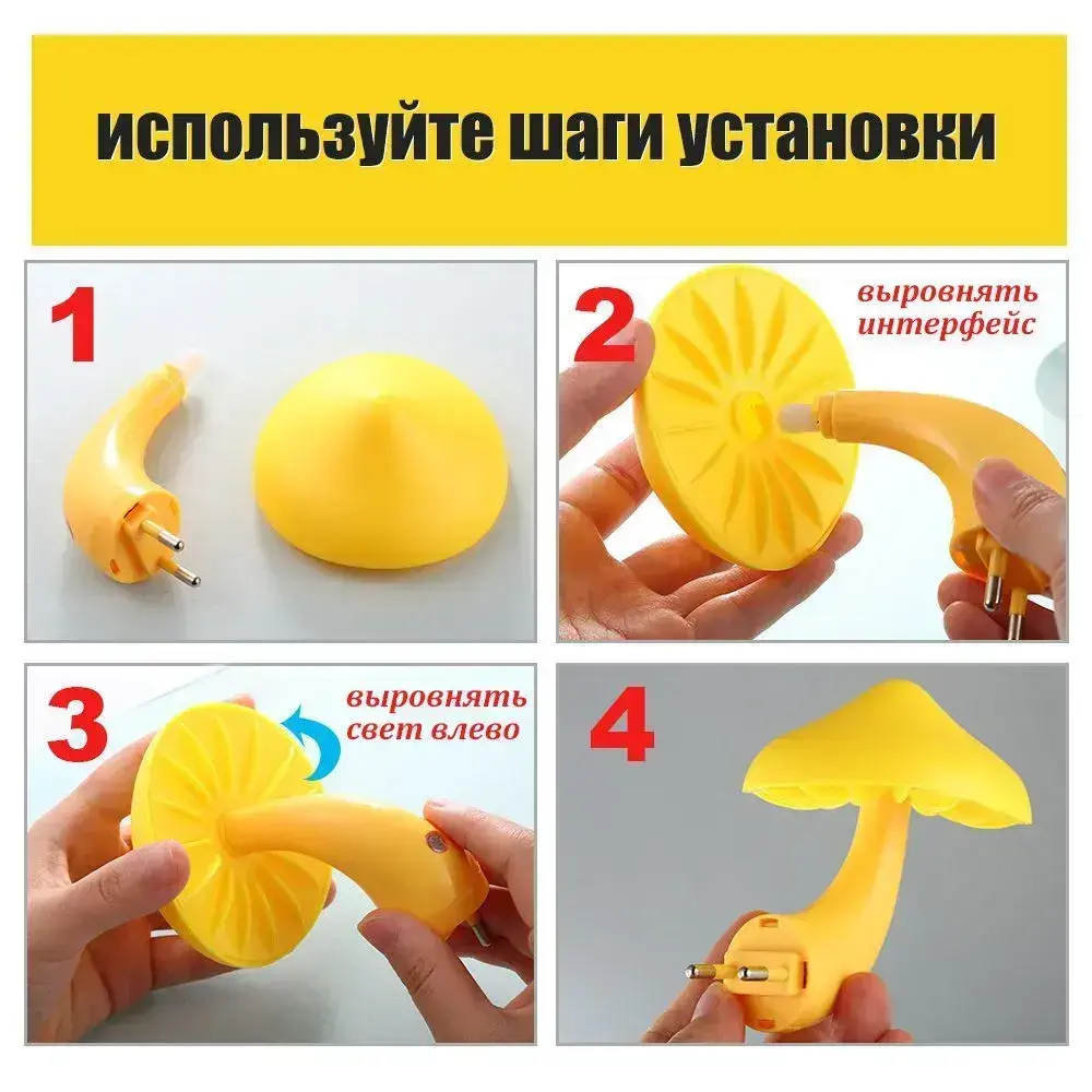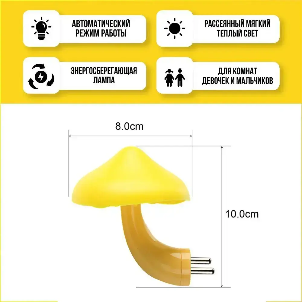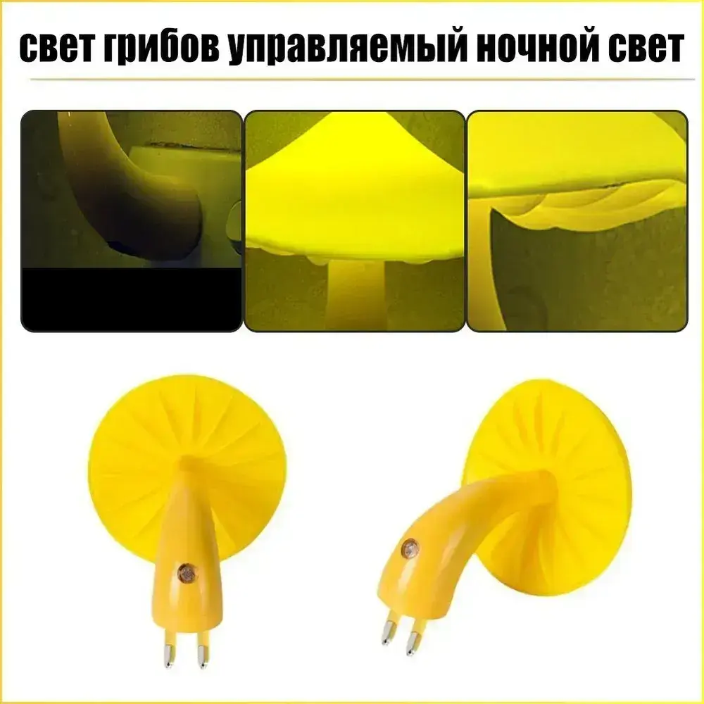 2 шт Ночник-светильник гриб с датчиком света, мягкий и теплый свет