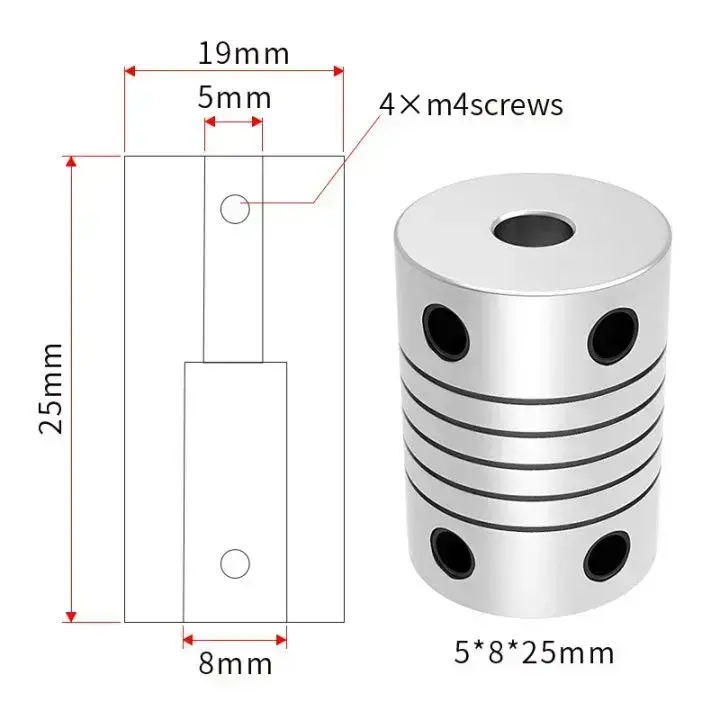 2 штуки. Соединительная муфта 5мм - 8мм, D19 L25, гибкая
