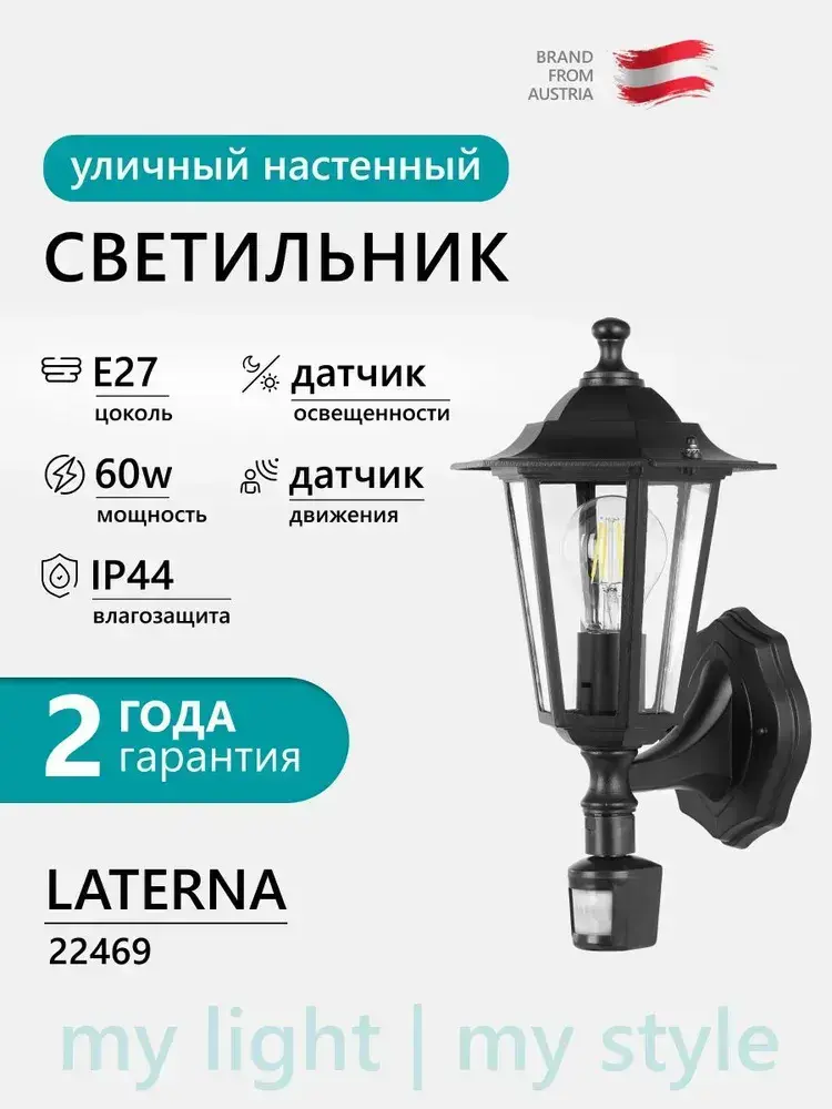 22469 Светильник уличный настенный с датчиком движения EGLO LATERNA 5