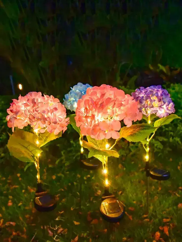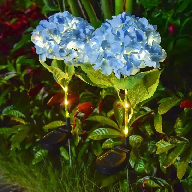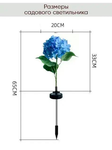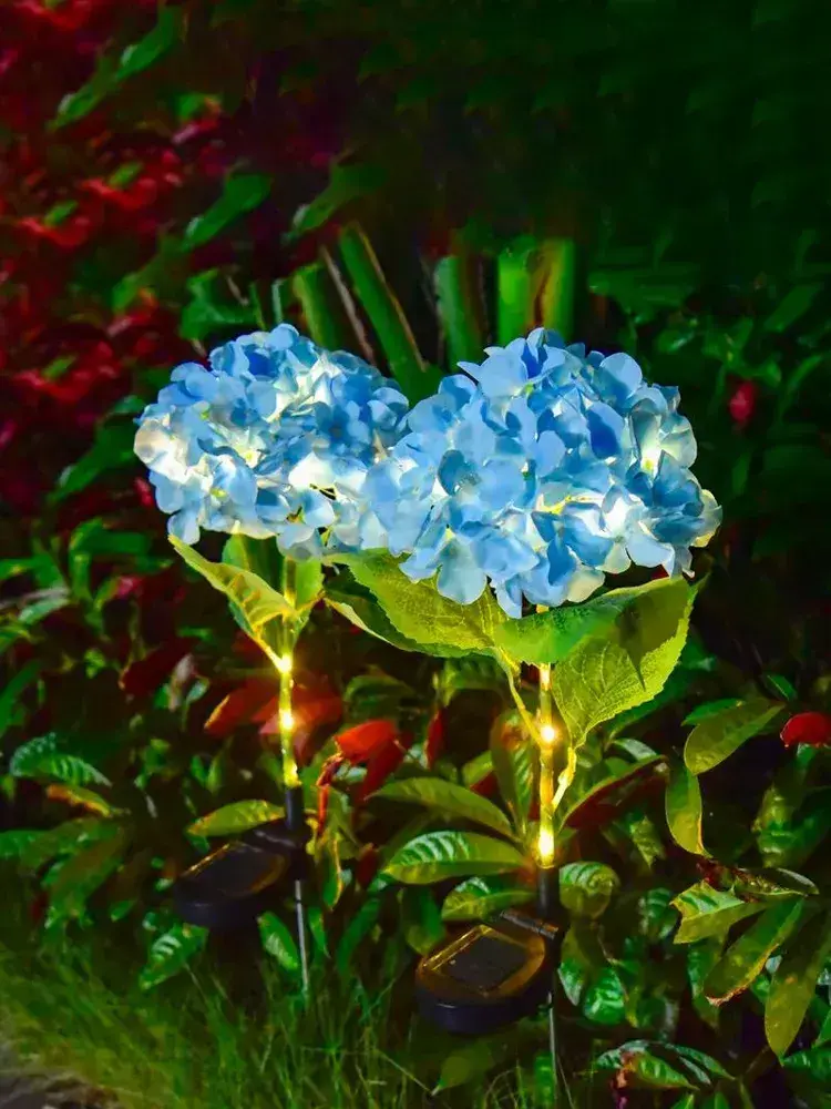 2шт. Декоративный садовый уличный светильник на солнечной батарее "Фонарик Гортензия голубая"