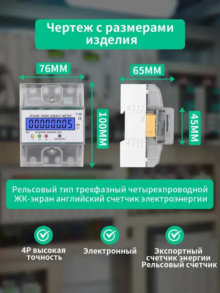 3-фазный 4-проводный счетчик энергии 220 / 380V 5-80A
