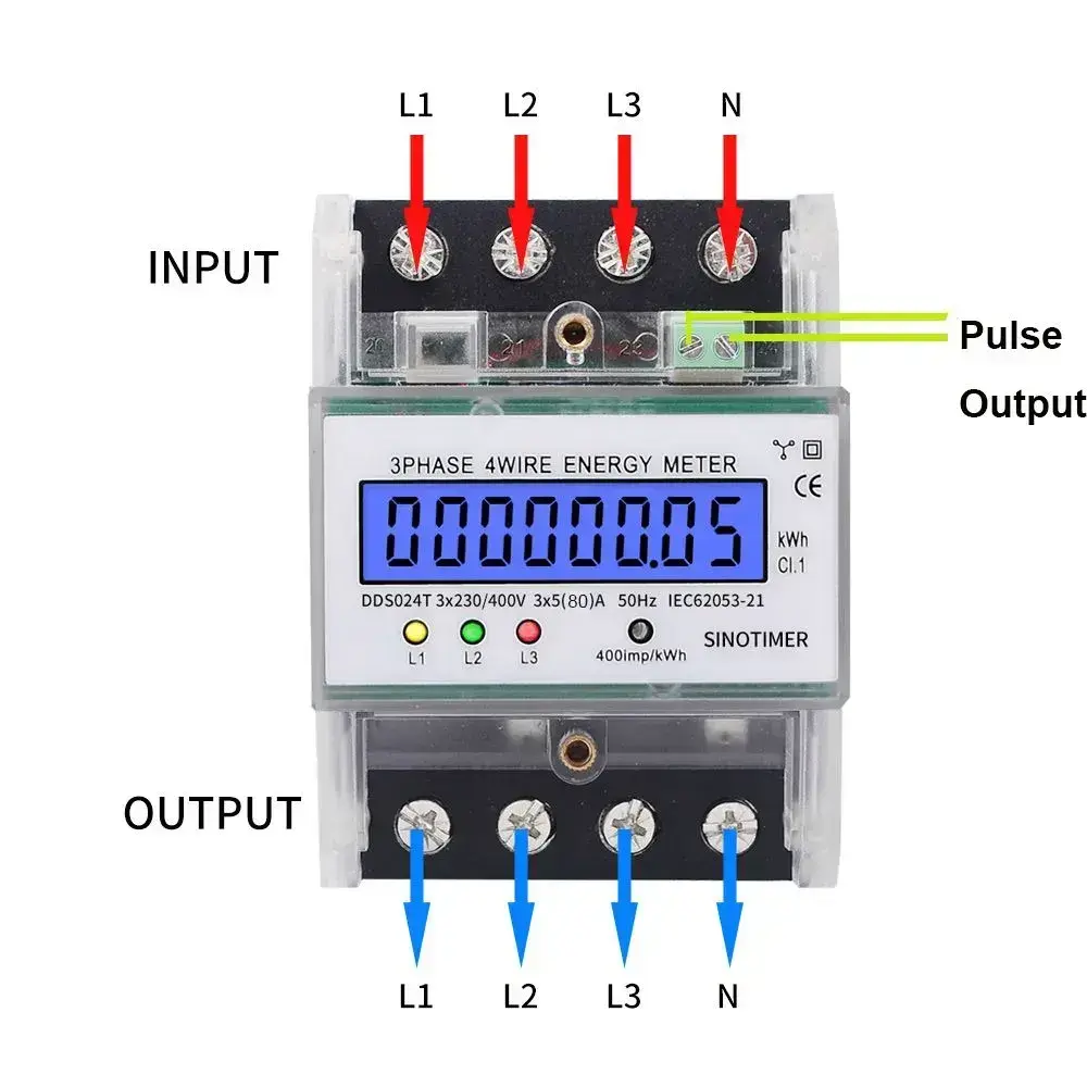 3-фазный 4-проводный счетчик энергии 220 / 380V 5-80A Энергопотребление Счетчик электросчетчик
