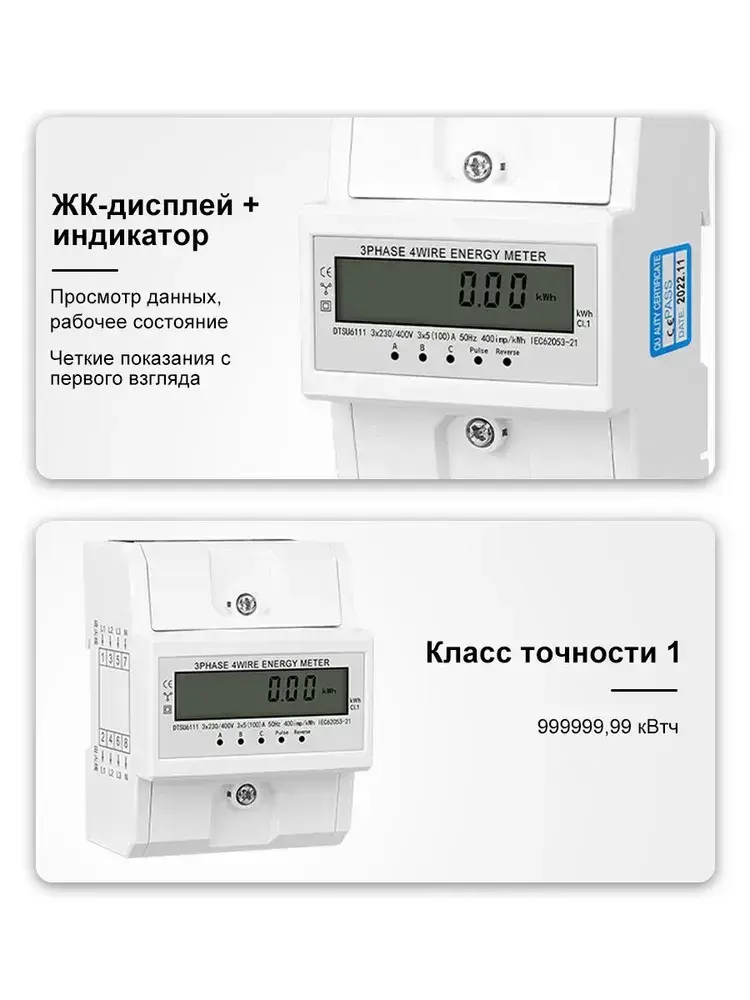 3-фазный 4-проводный счетчик энергии 220 / 380V 6-100A Энергопотребление Счетчик электросчетчик, с обратной подсказкой