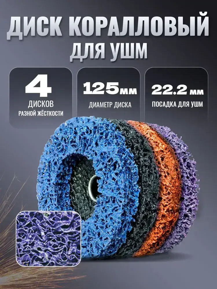 4 шт,Коралловые диски 125 круг зачистной для УШМ (4 цвета) диски для болгарки 125 по металлу