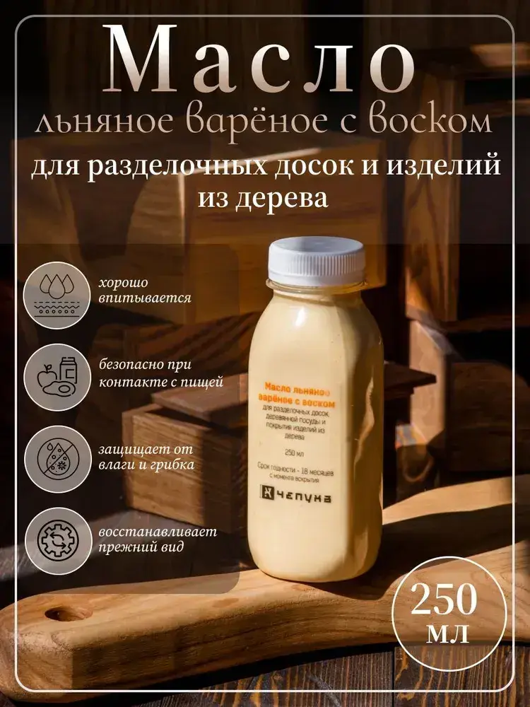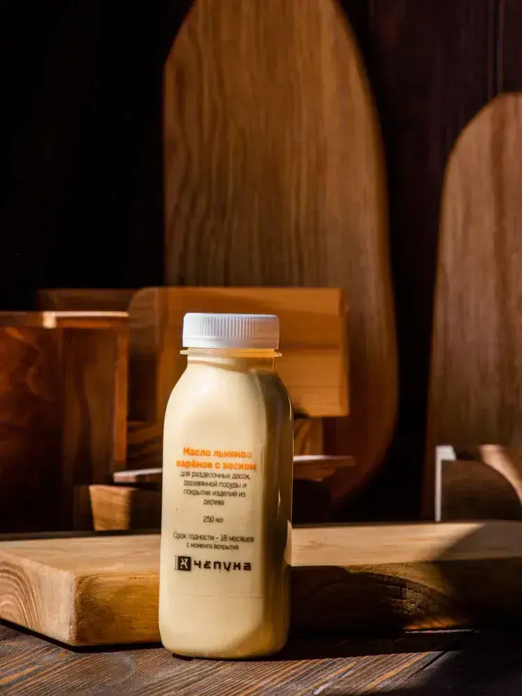 400030 Масло льняное вареное с воском для разделочных досок, деревянной посуды и покрытия изделий из дерева, 250 мл
