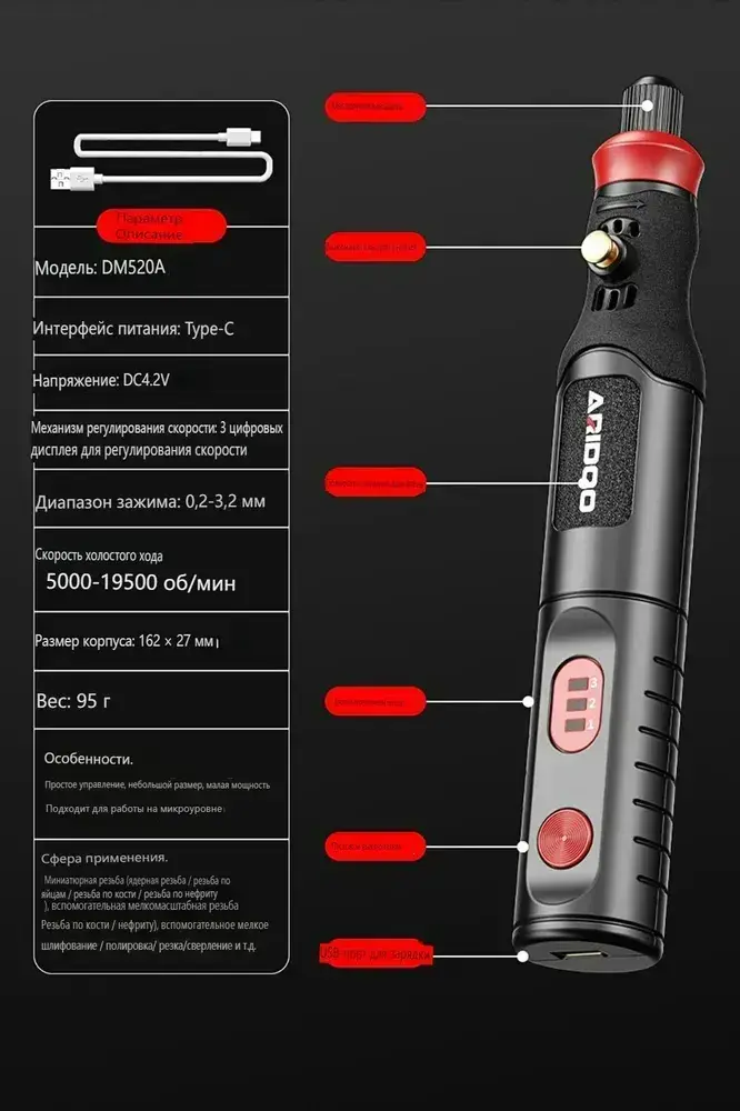 5000-19500r 4,2 В Беспроводная электрическая дрель Гравировальный станок Перезаряжаемый инструмент Микро-роторный гравер