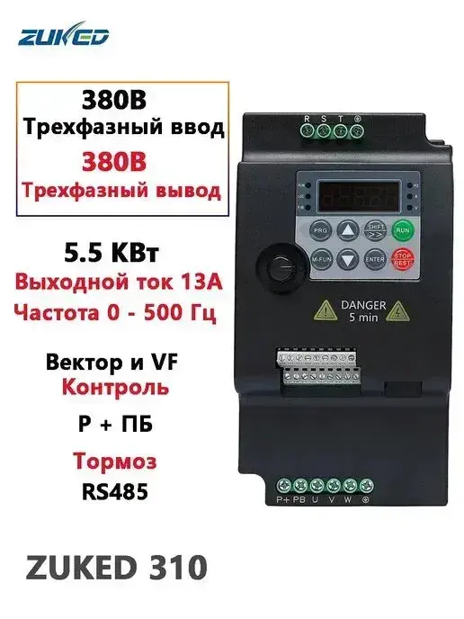 5,5 кВт VFD Частотный преобразователь Трехфазный вход 380В Трехфазный выход 380В ZUKED-310-380V-5.5KW(CW100)