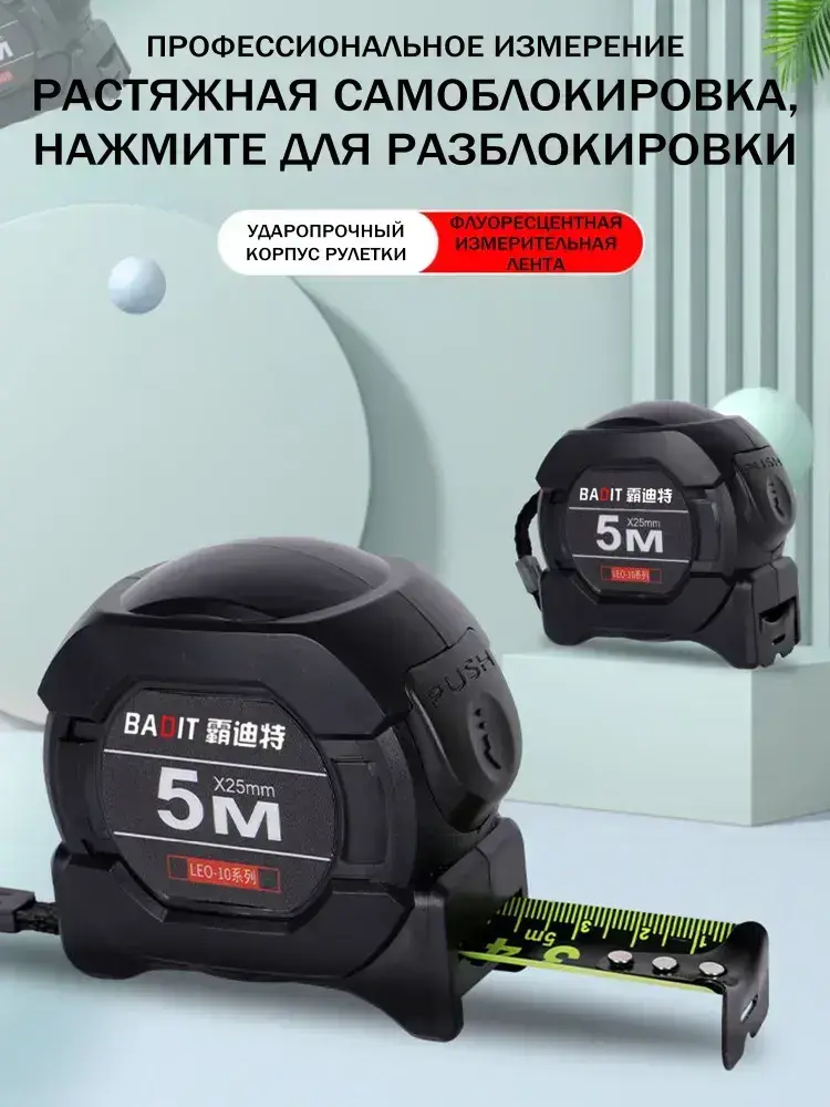 5м*25 мм Строительная рулетка с автостопом для измерений длиной 5 м с шириной ленты 25 мм