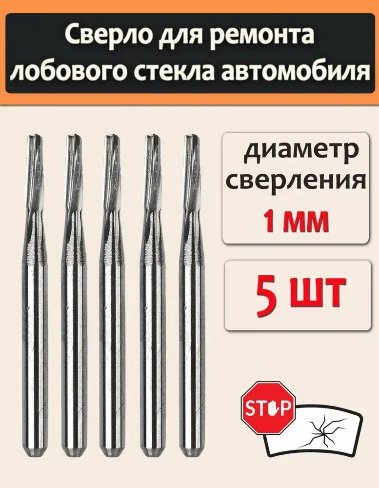5шт Сверло для ремонта лобового стекла автомобиля, ремонт трещин стекла, фреза, мини сверло 1 мм