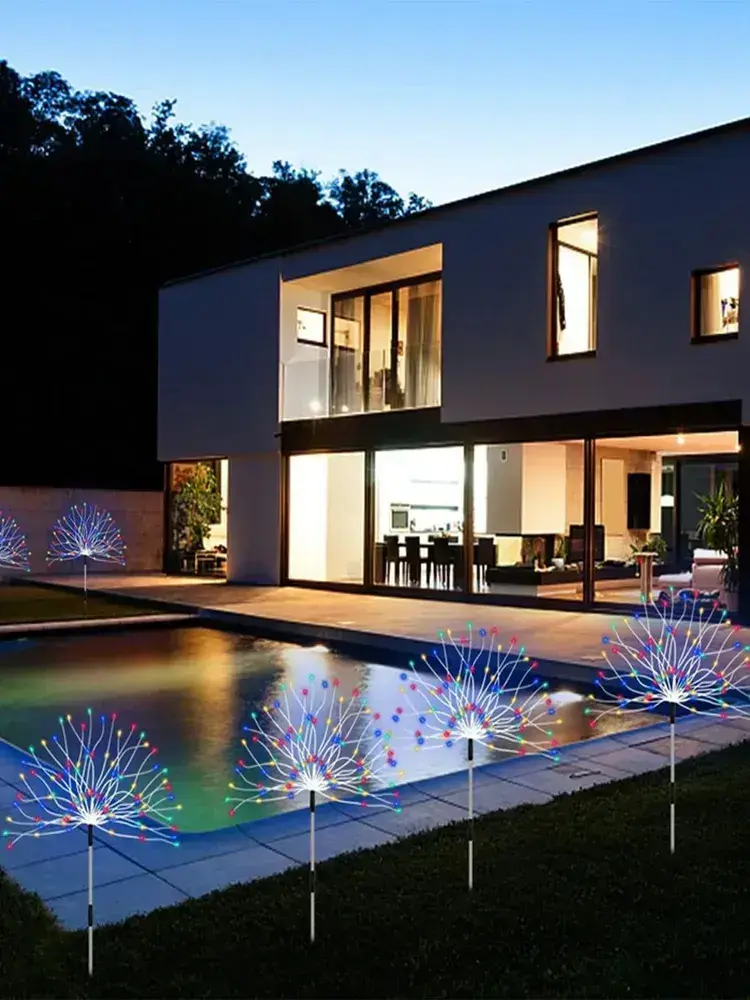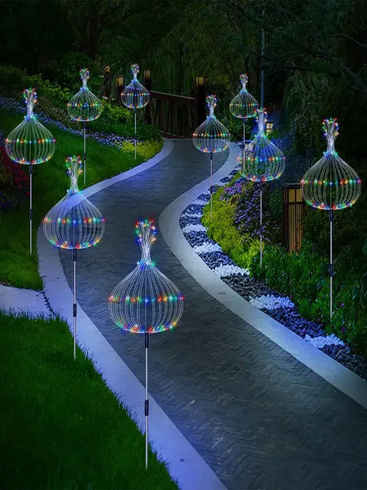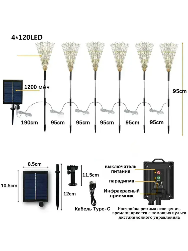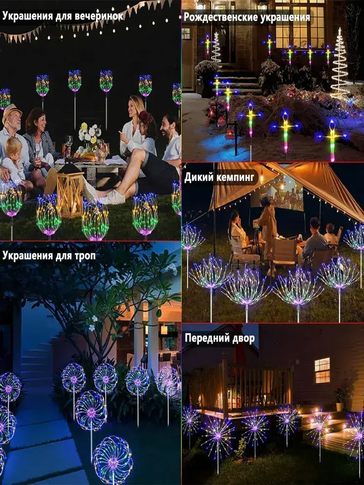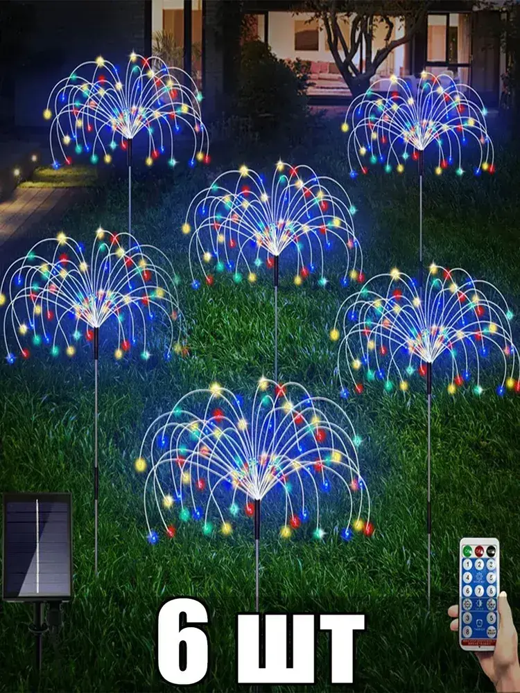 6 солнечных садовых фонаря,Садовый фонарь "Фейерверк" на солнечных батареях,6 шт * 120 LED цветной свет,8 режимов,Используется для освещения дома сада и дачи,с пультом ДУ