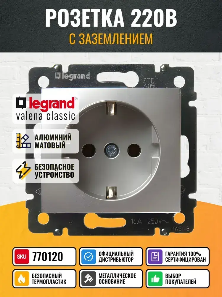770120 Legrand Valena - Розетка с заземлением - алюминий