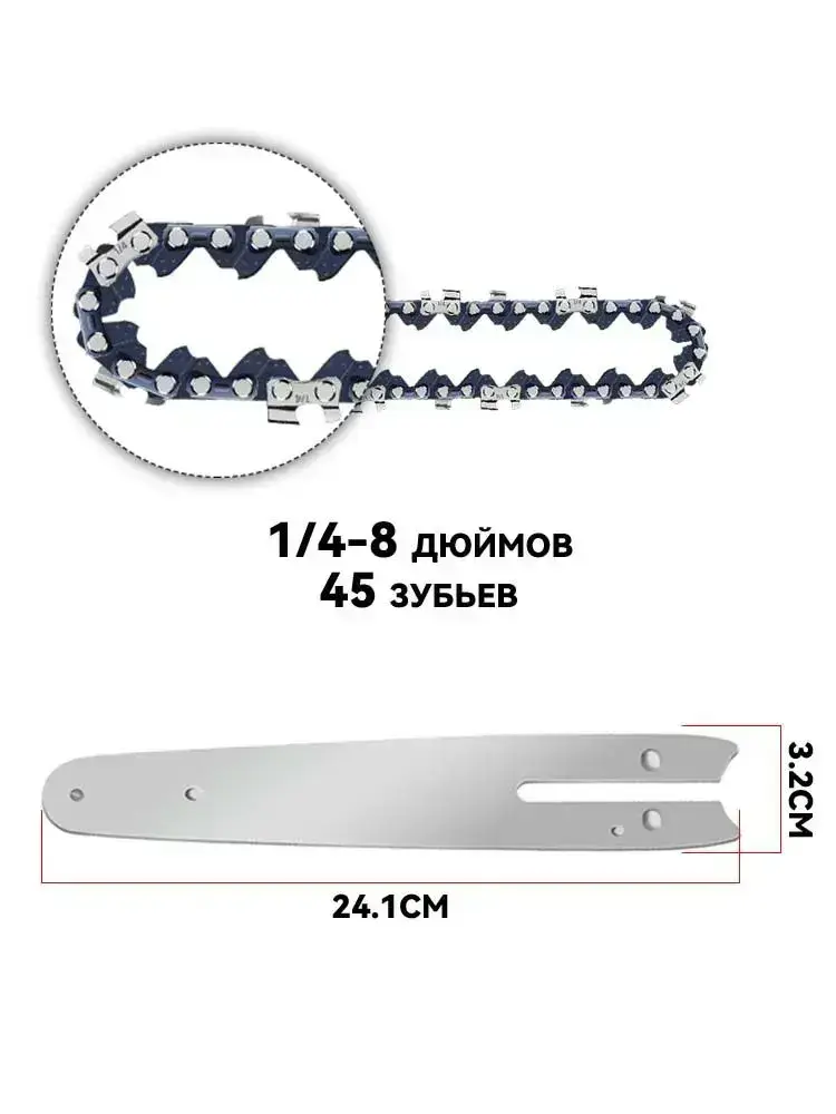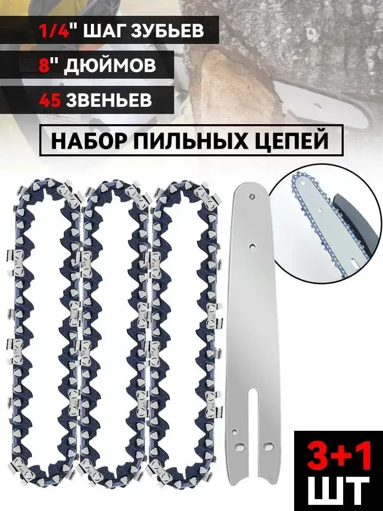 8"Цепь для аккумуляторной пилы 45 секций, шаг 1/4, комплект из 3 цепей с направляющими