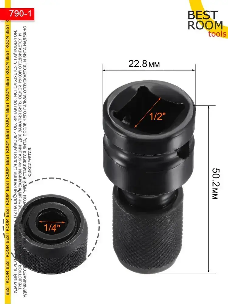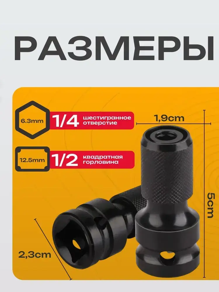 Адаптер для гайковерта для бит с квадрата 1/2 на шестигранник 1/4 ударный
