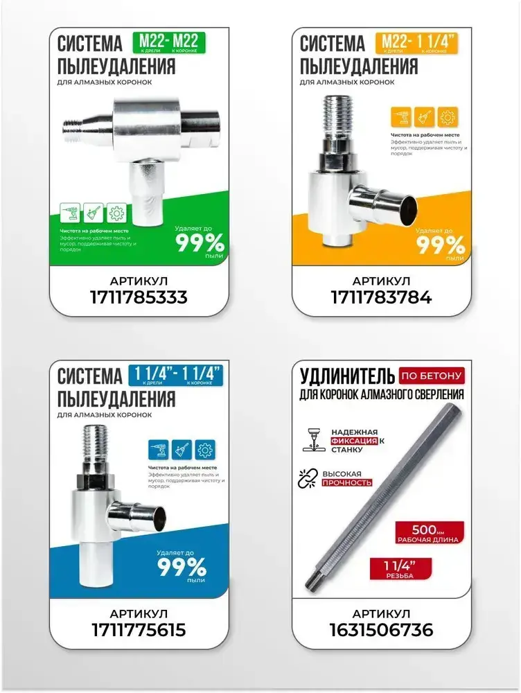 Адаптер переходник для дрели с М22 на 1 1/4" для алмазной коронки