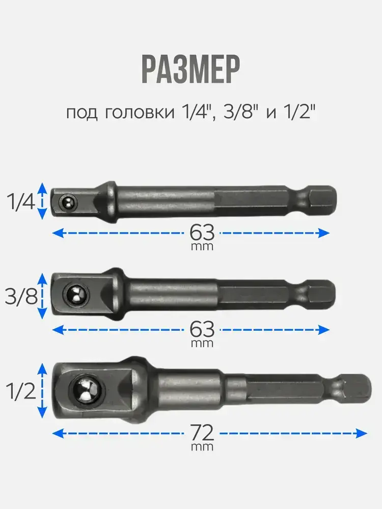 Адаптеры переходники под торцевую головку, 3 шт.