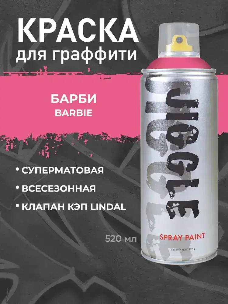 Аэрозольная краска для граффити в баллончике JIGGLE PRO суперматовая, 520 мл, BARBIE / Барби