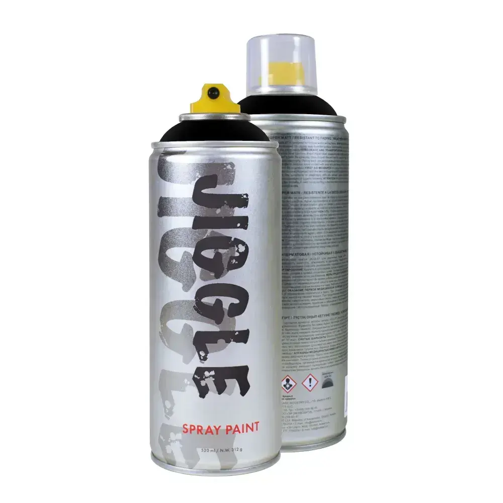 Аэрозольная краска для граффити в баллончике JIGGLE PRO суперматовая, 520 мл, BLACK / Чёрный - 2 шт