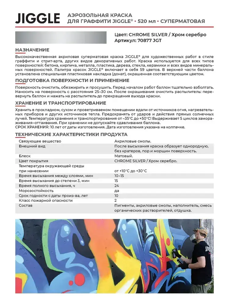 Аэрозольная краска для граффити в баллончике JIGGLE PRO суперматовая, 520 мл, CHROME SILVER / Хром серебро - 2 шт