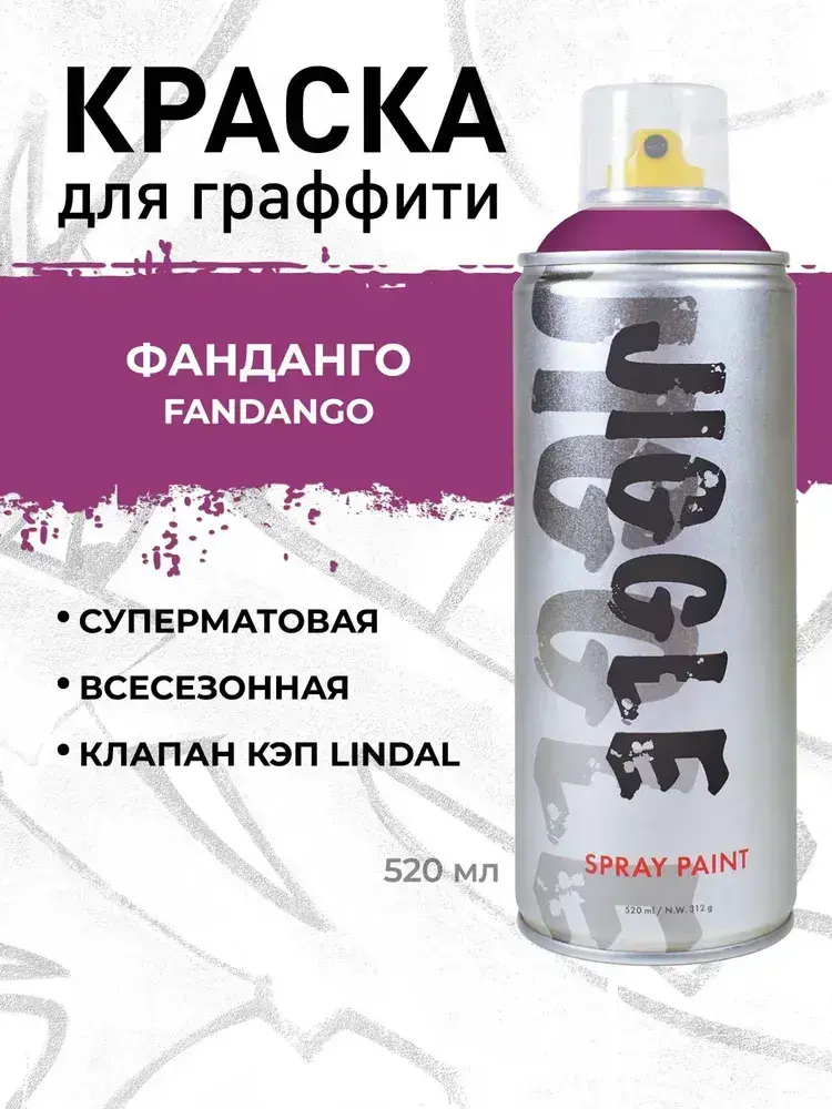 Аэрозольная краска для граффити в баллончике JIGGLE PRO суперматовая, 520 мл, FANDANGO / Фанданго