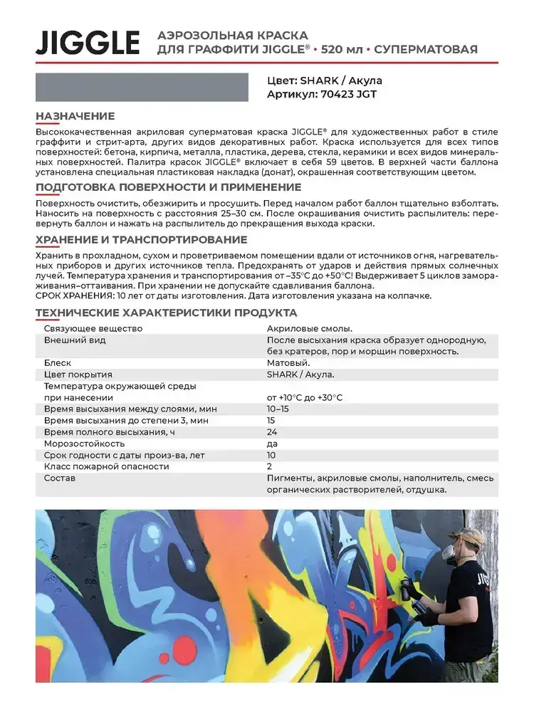 Аэрозольная краска для граффити в баллончике JIGGLE PRO суперматовая, 520 мл, SHARK / Акула