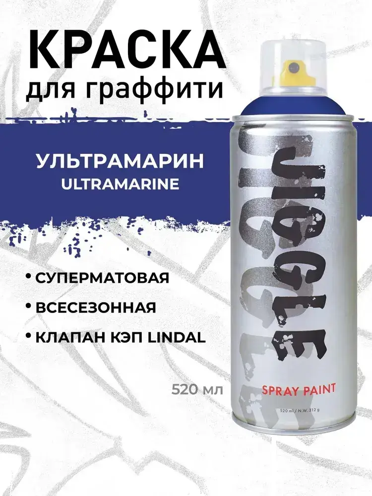 Аэрозольная краска для граффити в баллончике JIGGLE PRO суперматовая, 520 мл ULTRAMARINE / Ультрамарин