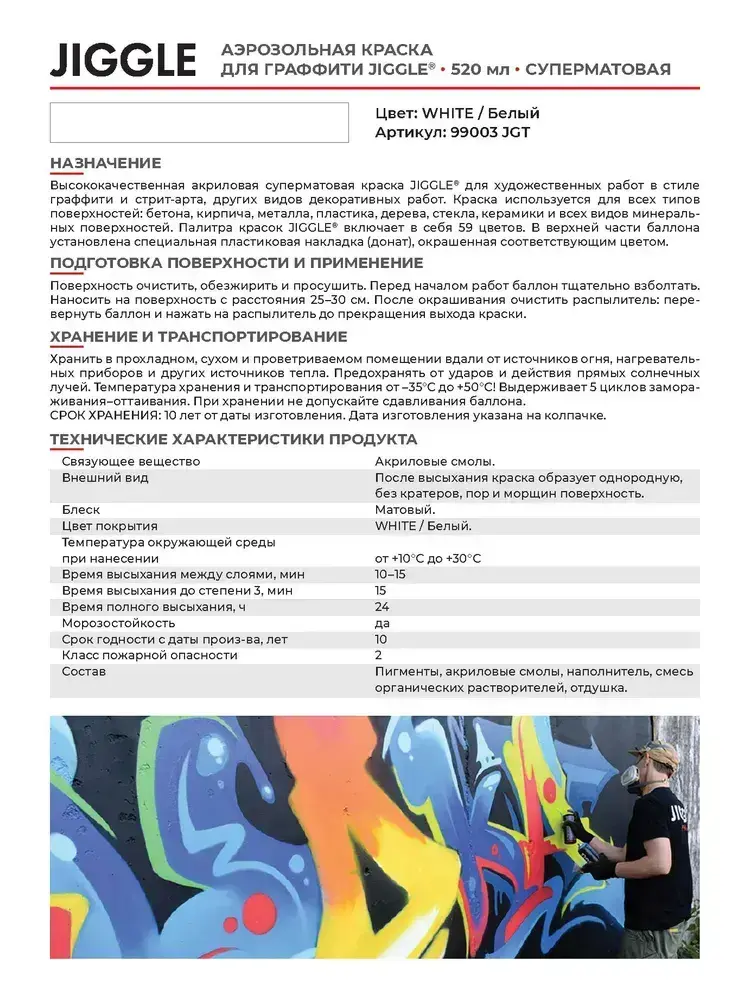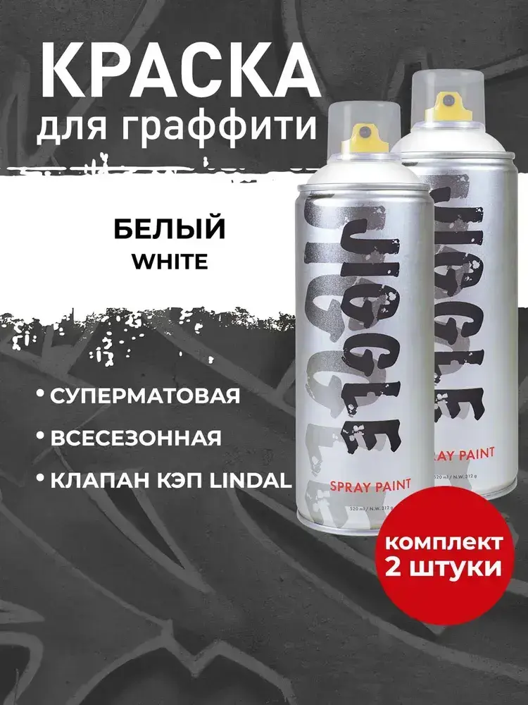 Аэрозольная краска для граффити в баллончике JIGGLE PRO суперматовая, 520 мл, WHITE / Белый - 2 шт