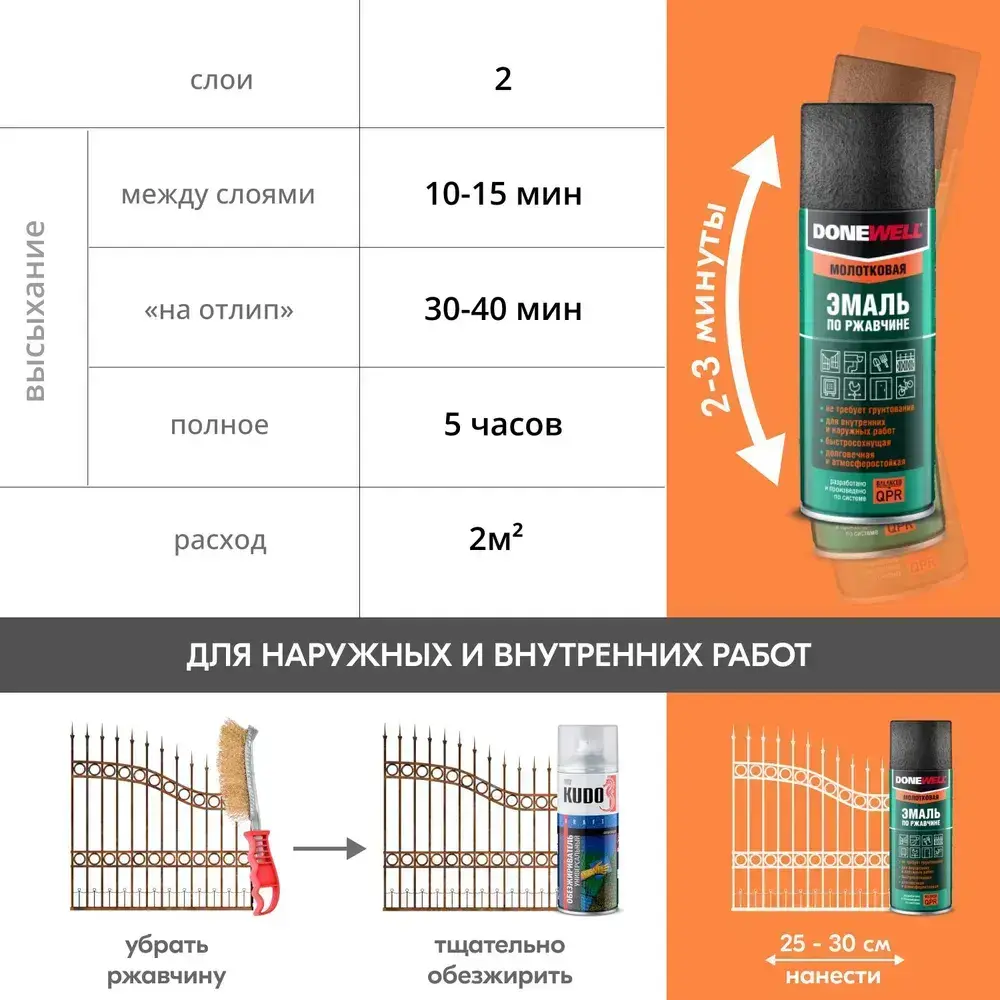 Аэрозольная краска DONEWELL "Эмаль по ржавчине молотковая в баллончике", Глянцевая, 0.52 л, Серебристо-черная