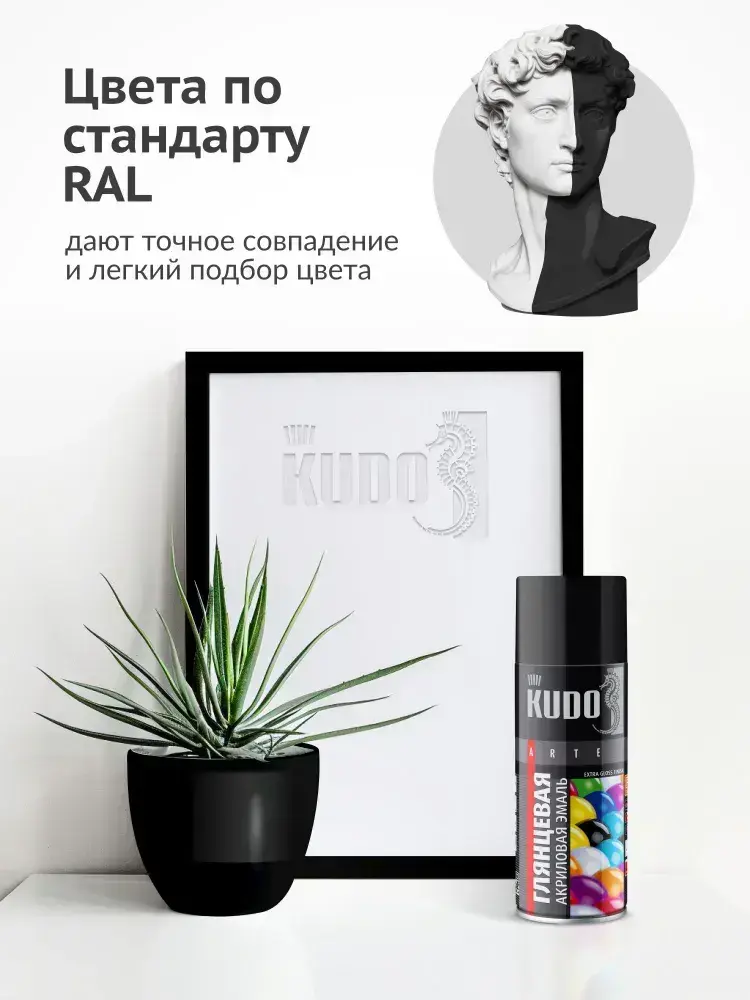 Аэрозольная краска KUDO "Эмаль универсальная быстросохнущая RAL в баллончике" Акриловая, Глянцевая, 0.52 л, Чёрная RAL 9005
