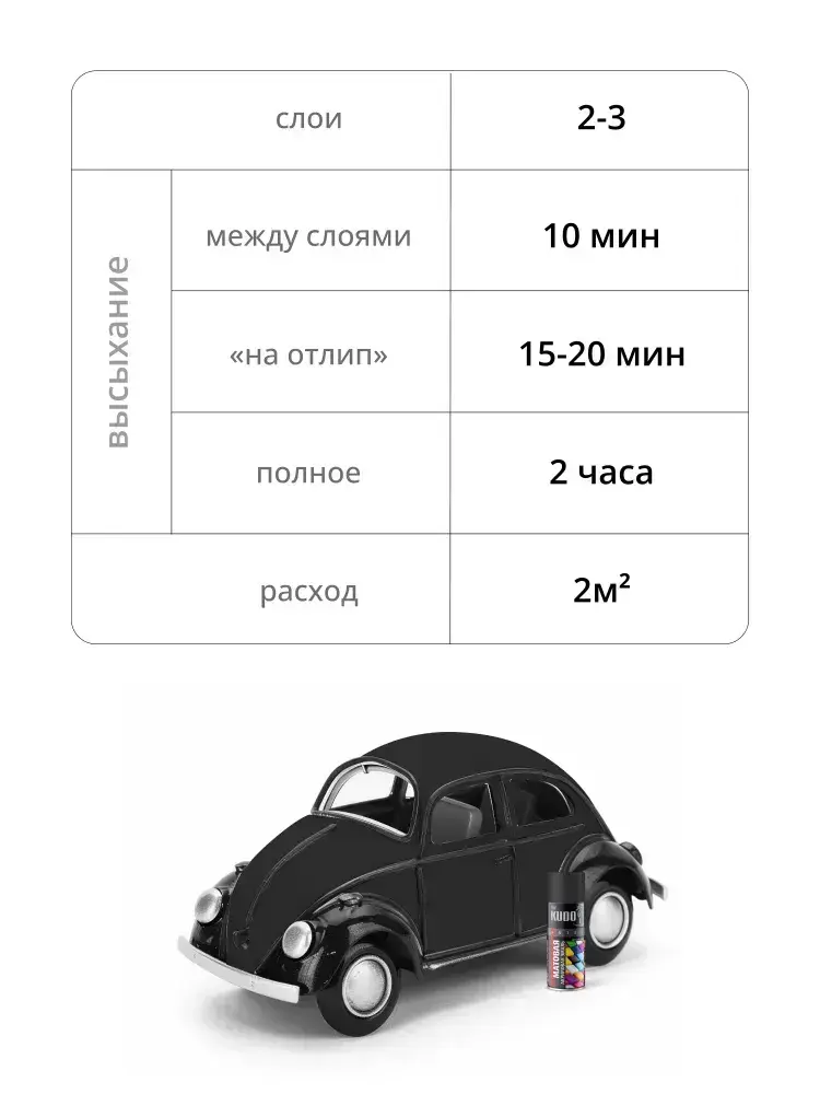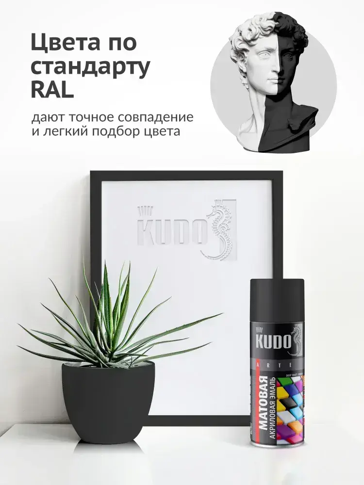 Аэрозольная краска KUDO "Эмаль универсальная быстросохнущая RAL в баллончике" Акриловая, Матовая, 0.52 л, Чёрная матовая RAL 9005
