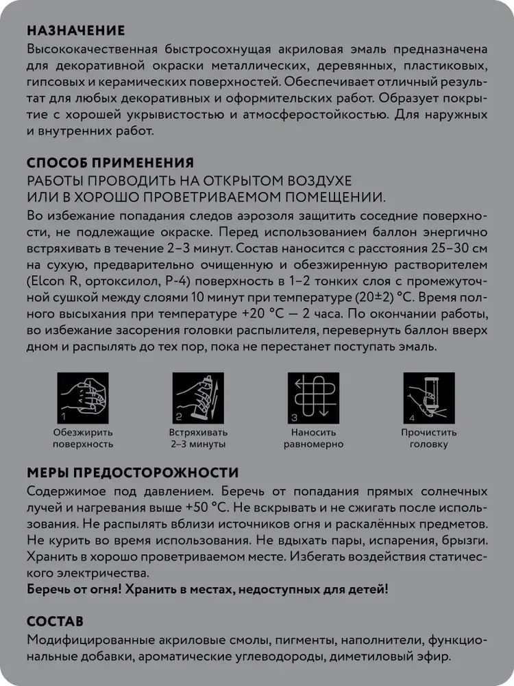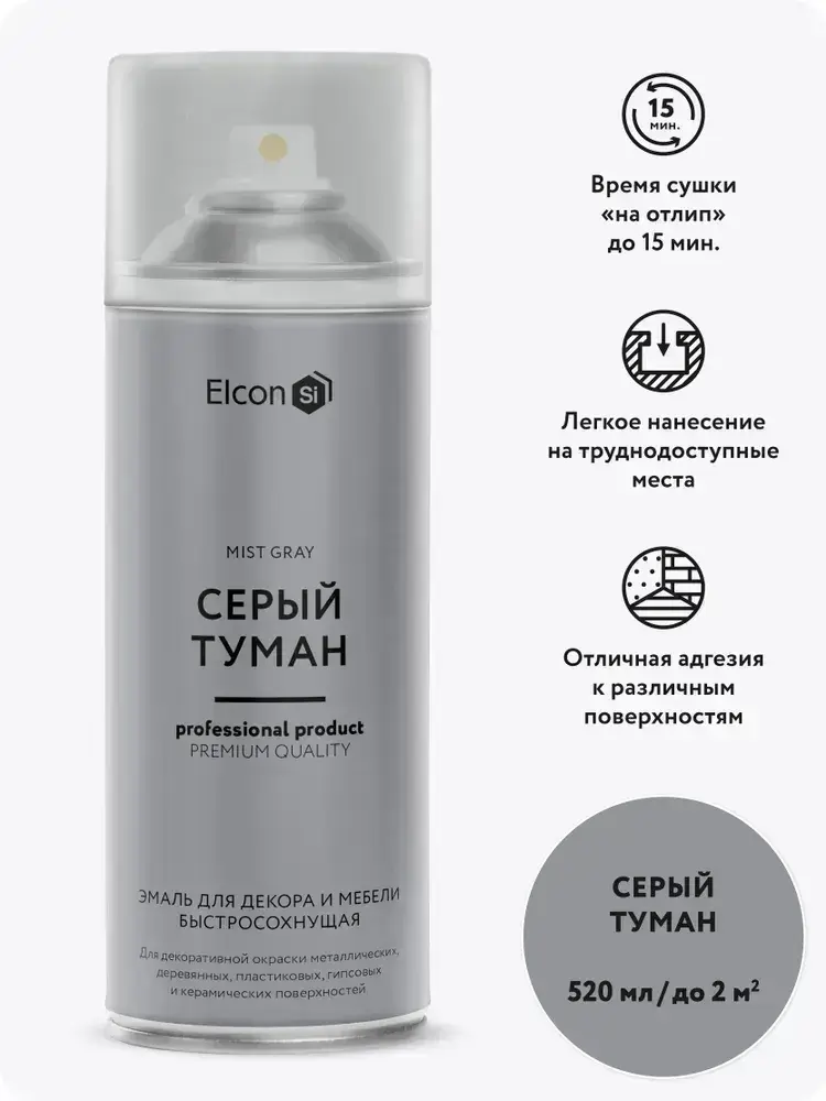Аэрозольная краска в баллончике Elcon для мебели и декора, акриловая, быстросохнущая, 0.52 л, серый туман