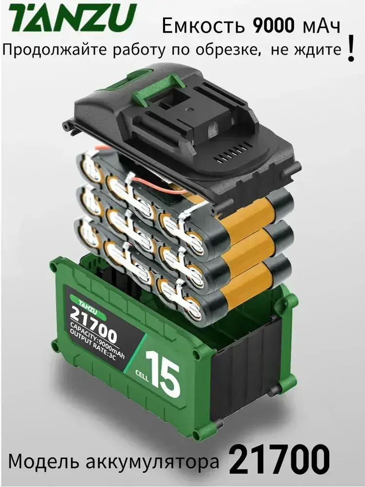 Аккумулятор 21В 9 Ач с индикатором заряда для электроинструментов/Дрель, шуруповерт