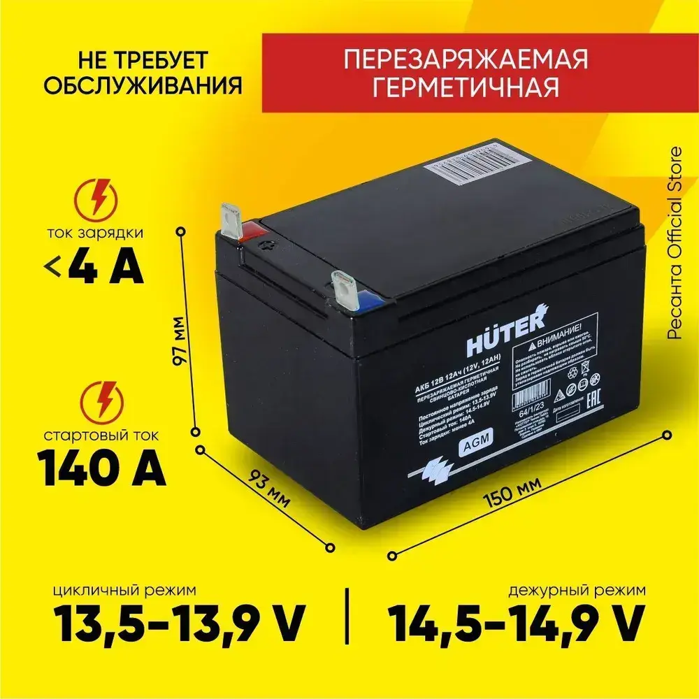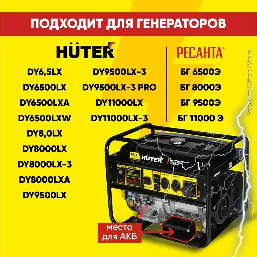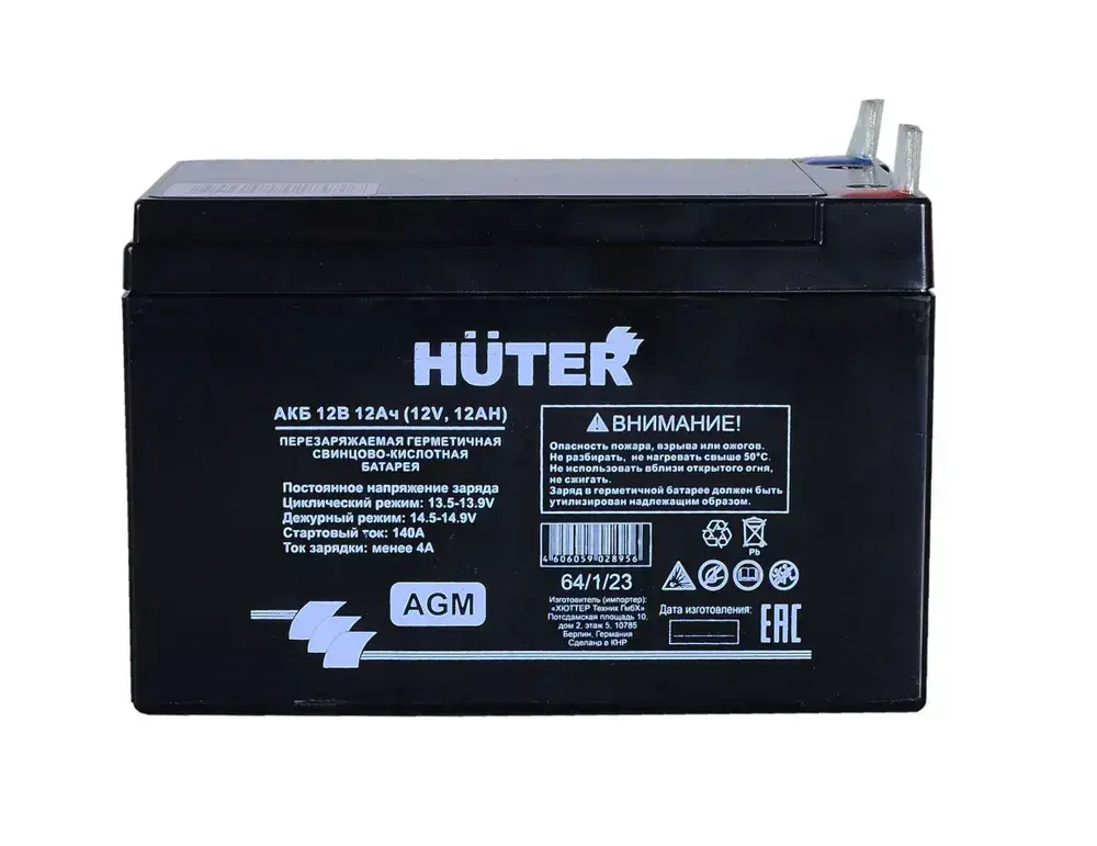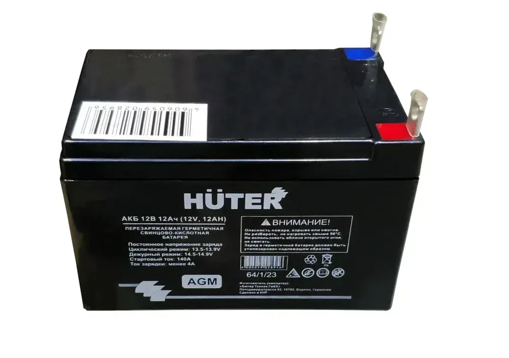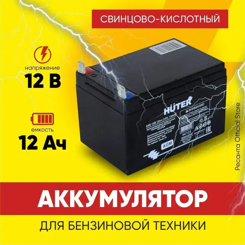 Аккумулятор для генераторов, мотоблоков, снегоуборщиков 12В 12Ач Huter