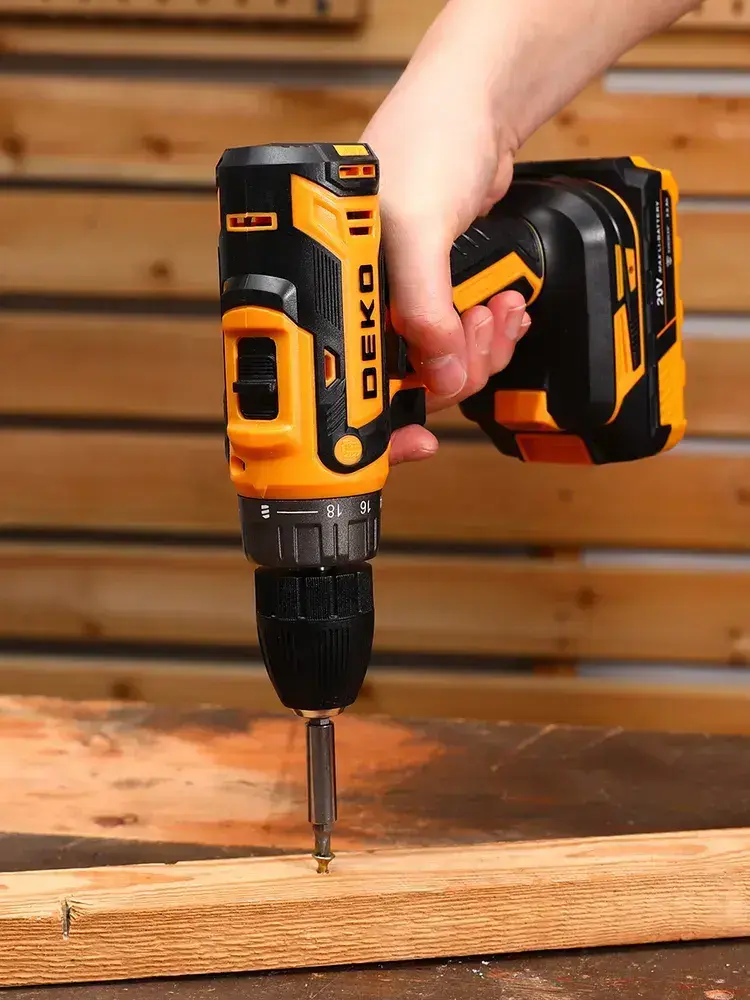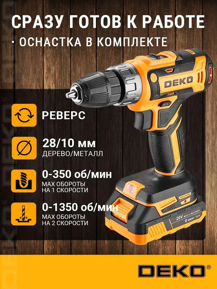 Аккумуляторная дрель-шуруповерт DEKO DKCD20V в кейсе + набор 63 инструмента для дома, 20В, 2х2.0Ач