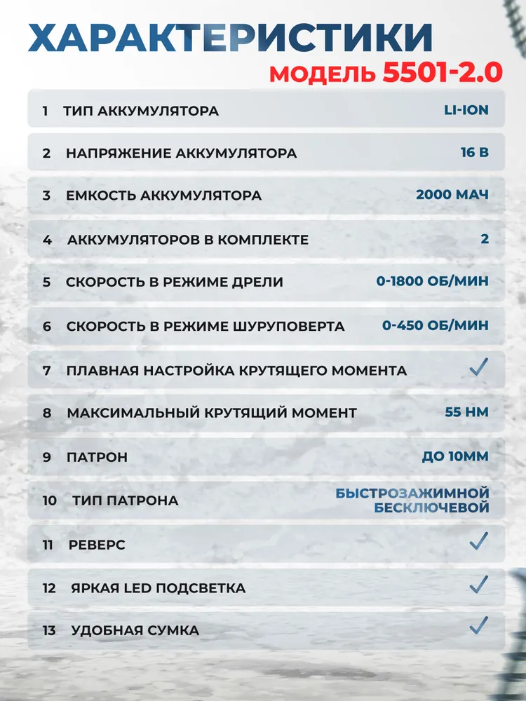 Аккумуляторная дрель - шуруповерт с бесщеточным двигателем MABAR 5501-2.0