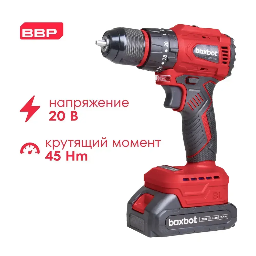 Аккумуляторная ударная бесщеточная дрель-шуруповерт Boxbot 20В, 2 АКБ 2 Ач, в кейсе, CD-2020BLI