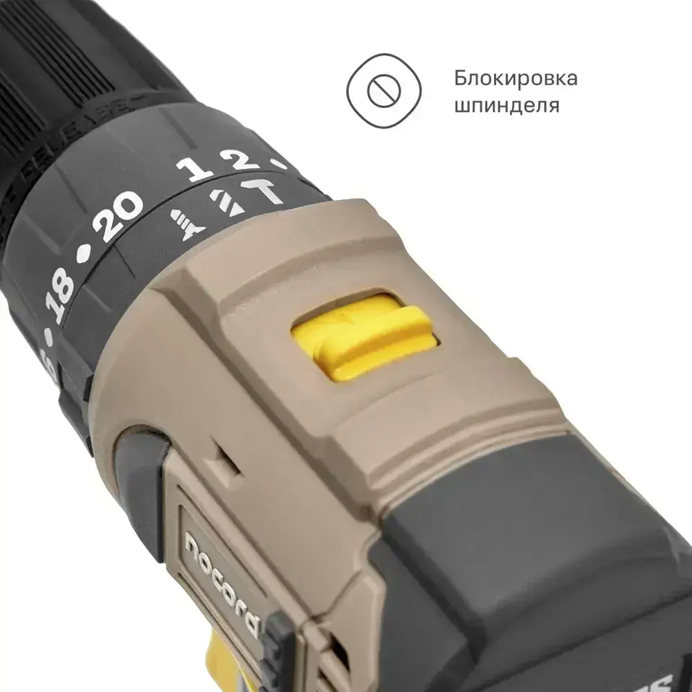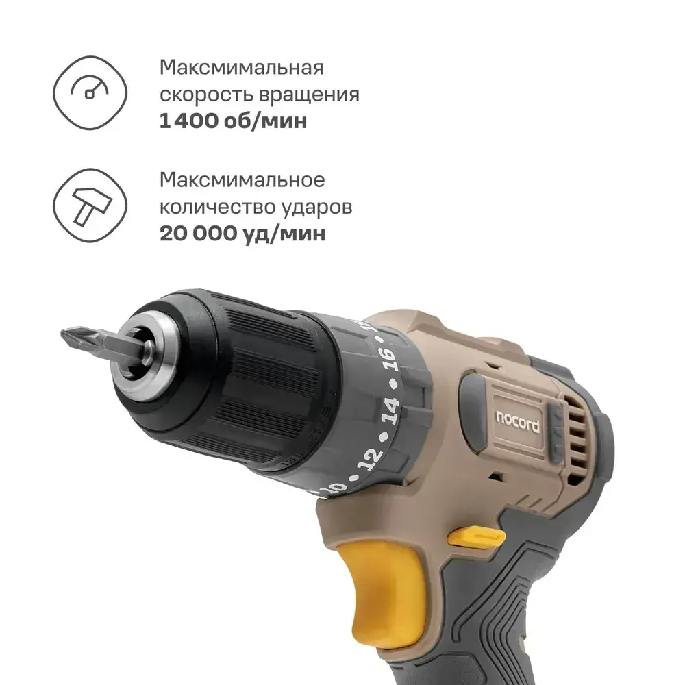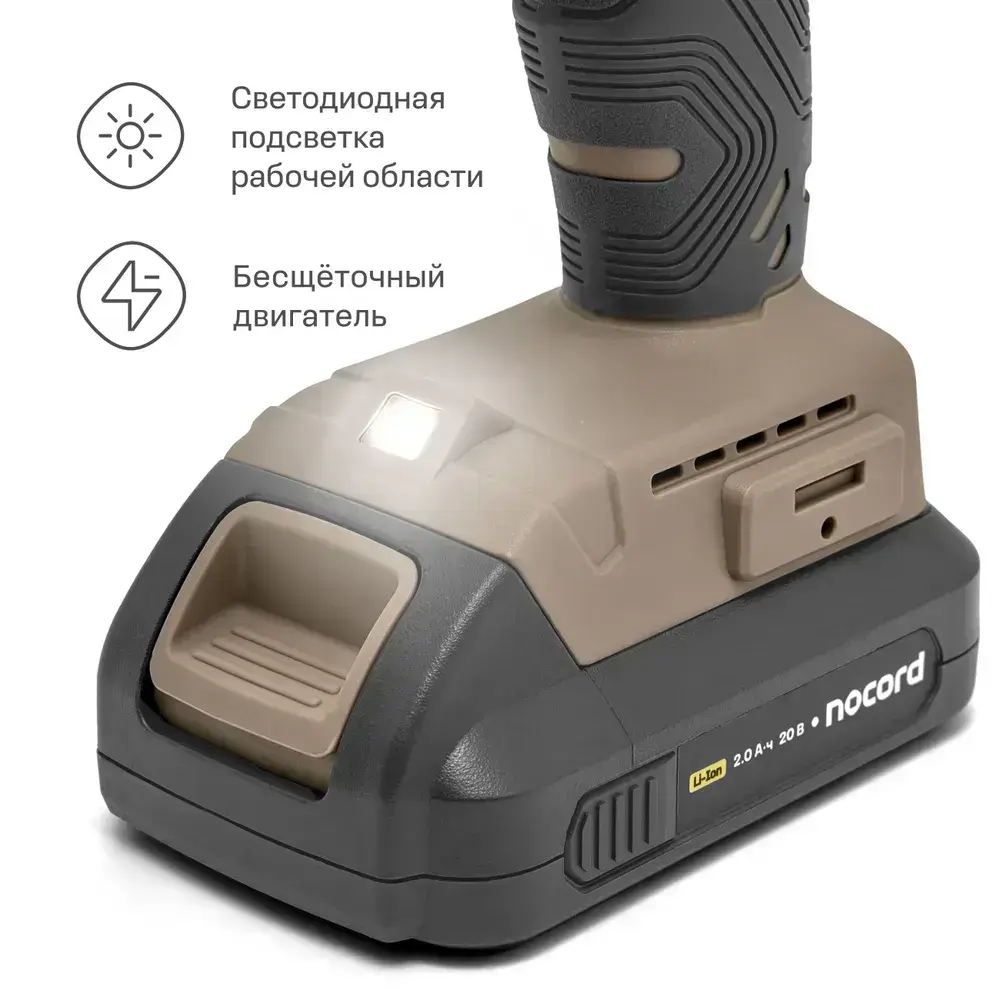 Аккумуляторная ударная бесщеточная дрель-шуруповерт Nocord, 20В, 2х2 А ч, в кейсе, NВDI-20.2.20.А