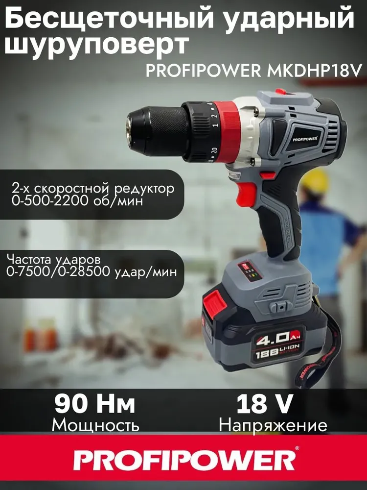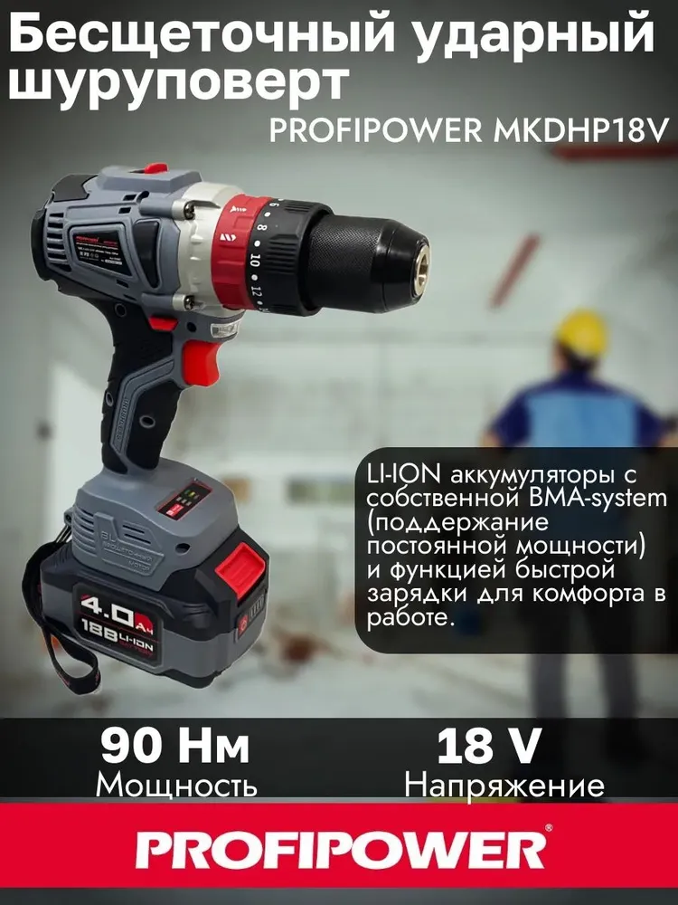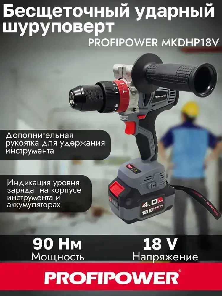 Аккумуляторный бесщеточный шуруповерт 18V 90Нм 2х4AH CASE PROFIPOWER