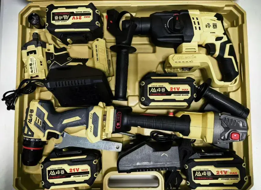 Аккумуляторный набор 4 в 1 Feng Bao, Дрель-шуруповерт Fb-1321, Гайковерт 650, Перфораторатор 8020 и Ушм 5230, 2 акб 6а. ч