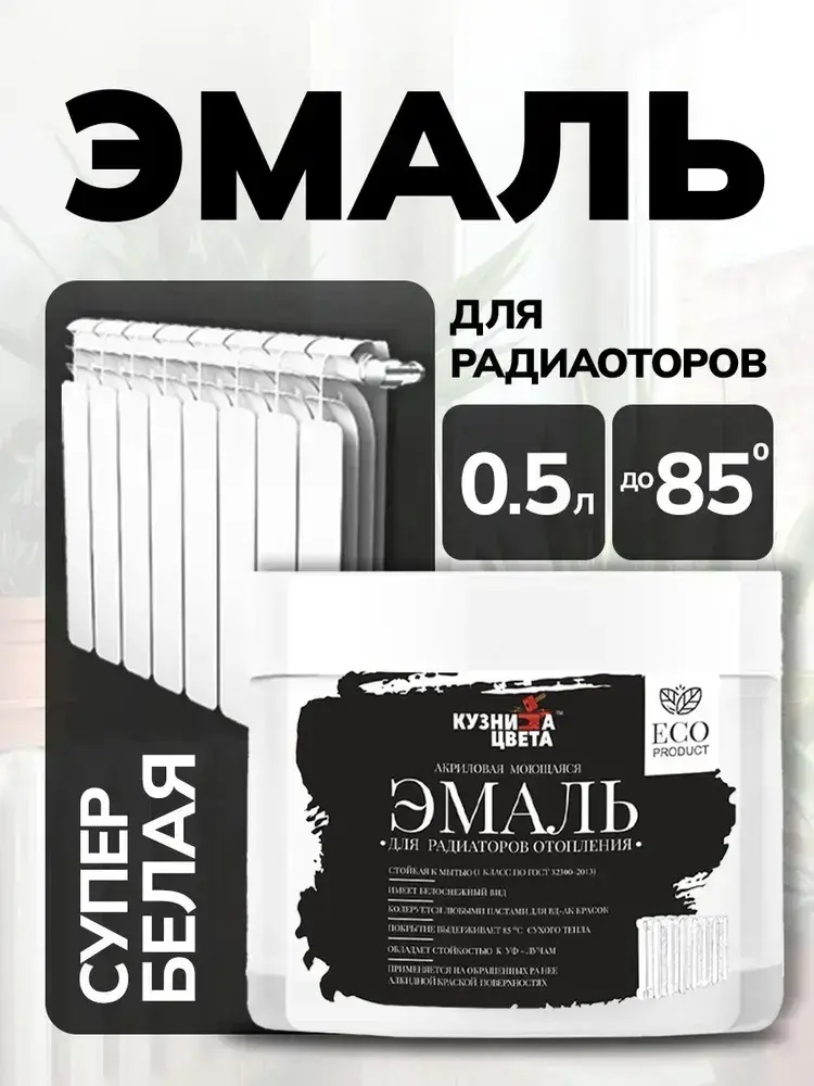 Акриловая моющаяся белая эмаль для радиаторов отопления 0.5л
