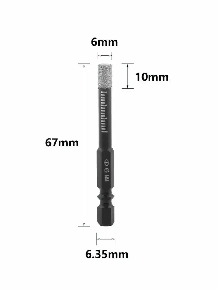 алмазной коронкой , вакуумной сварки, сухого сверления, Для керамической плитки, мрамора и стекла,6mm 1 шт.
