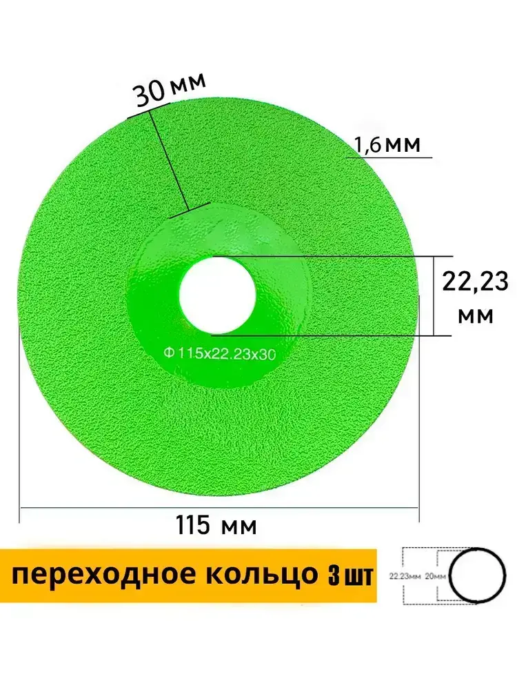 Алмазный диск отрезной 115х22,23х1.6 мм для резки стекла, керамики 3 шт