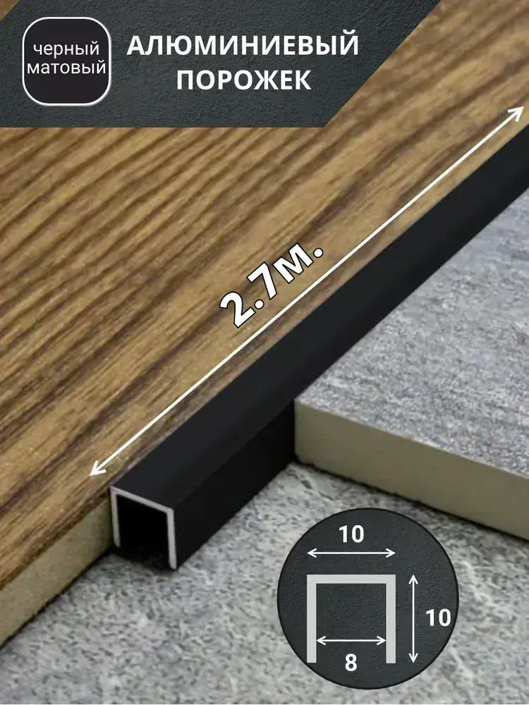Алюминиевый П образный декоративный профиль 10х10мм черный/мат 2,7м.