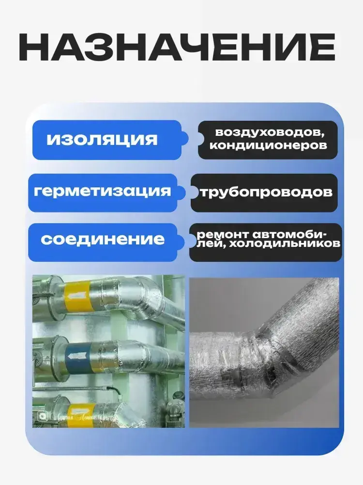 Алюминиевый скотч 50 мм х 100 метров, клейкая алюминиевая лента на ПЭТ основе