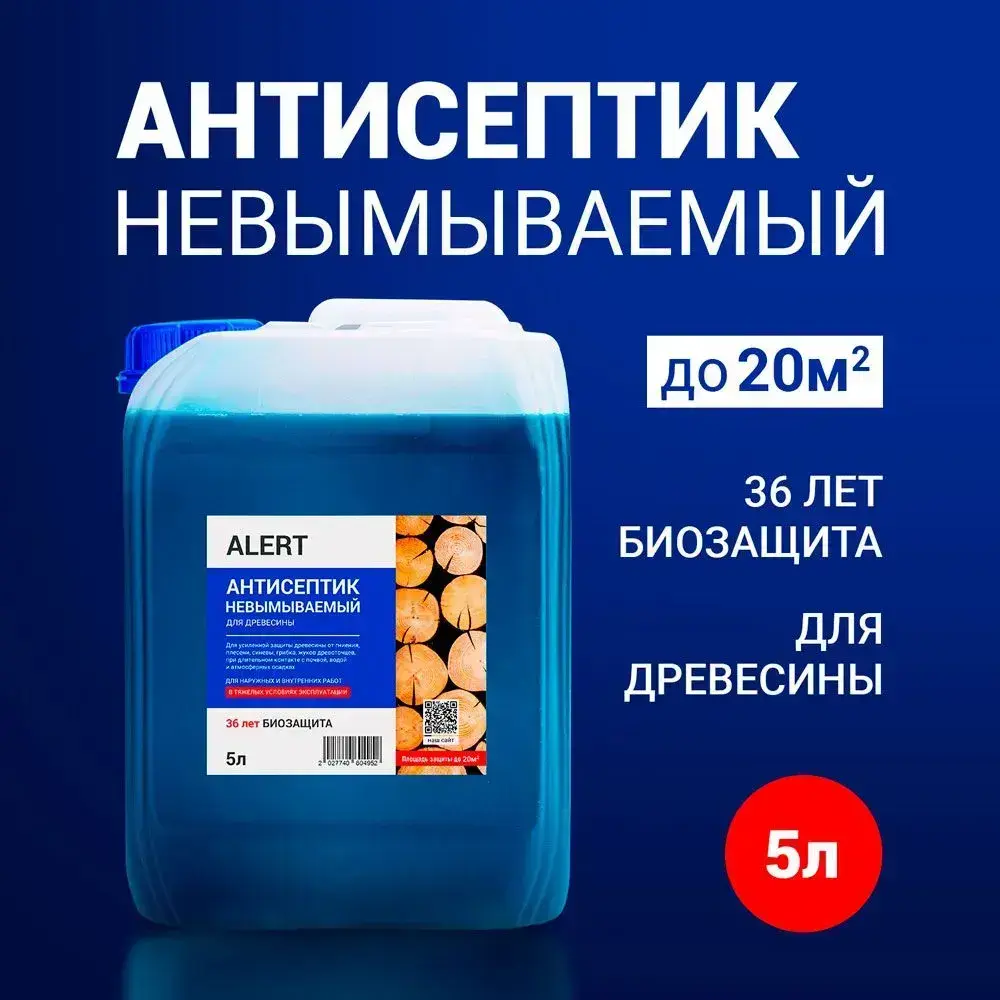 АНТИСЕПТИК для дерева невымываемый ALERT Antiseptic ULTRA 5л водоотталкивающий для тяжелых условий эксплуатации древесины защита от плесени, грибков, гнили, черноты, влаги, жуков древоточцев до 25м2